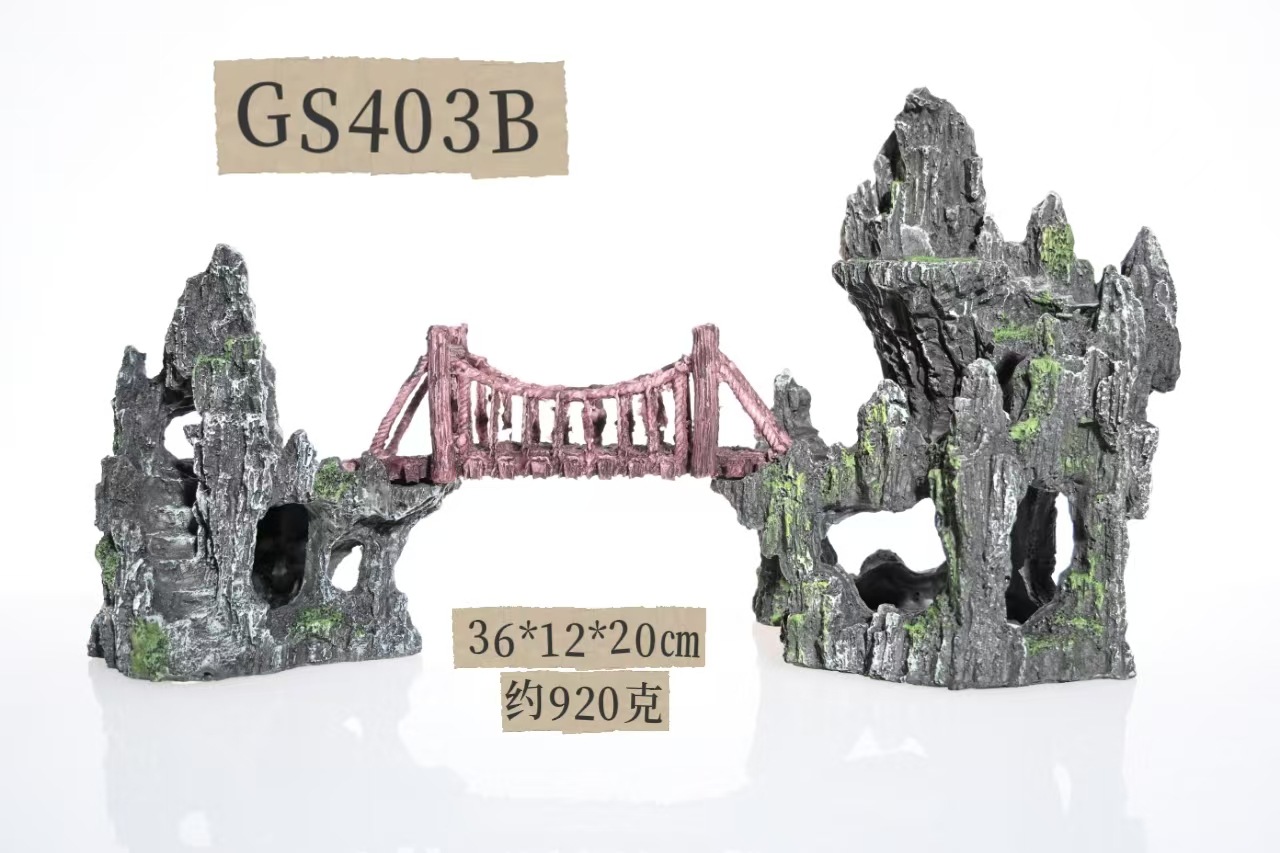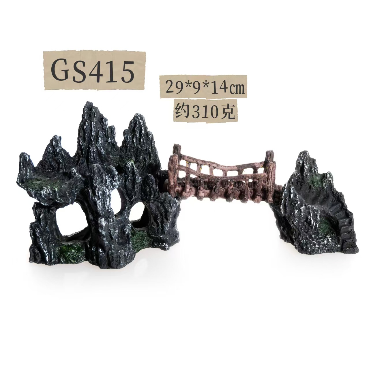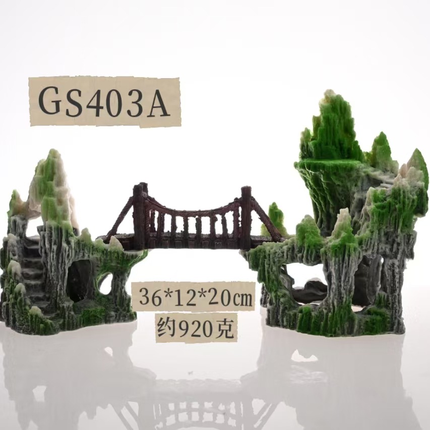 공장 공급 수족관 조경 수지 액세서리 장식 물고기 탱크 조경 바위 현수교 세트 보기 뜨거운 판매스토어 가기