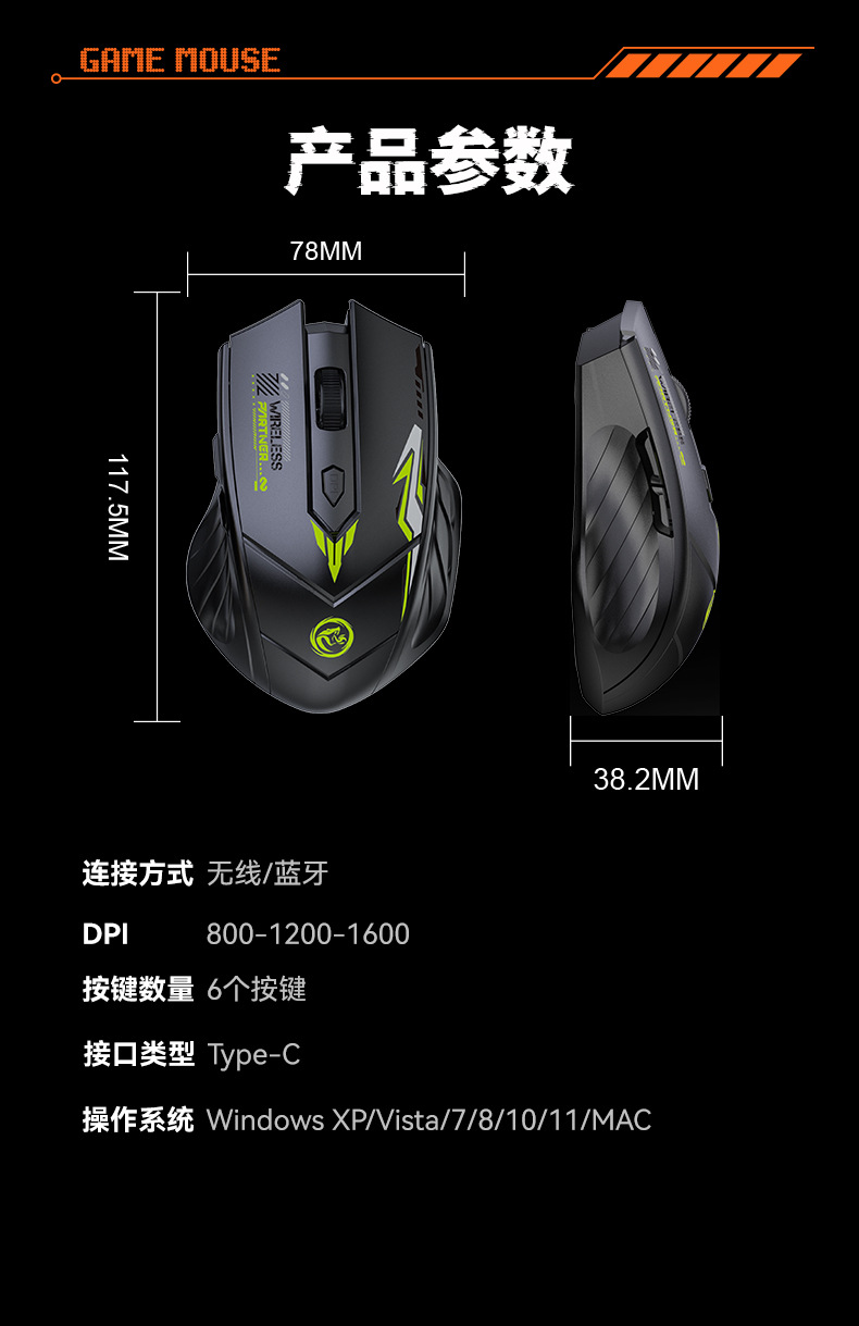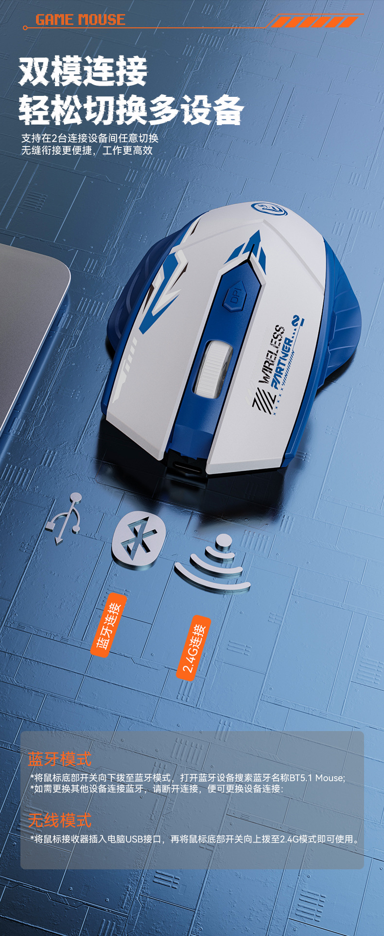 메카 스타일 무선 마우스 Bluetooth 2.4G e-스포츠 게임 충전 듀얼 모드 무음 노트북 오피스 마우스스토어 가기
