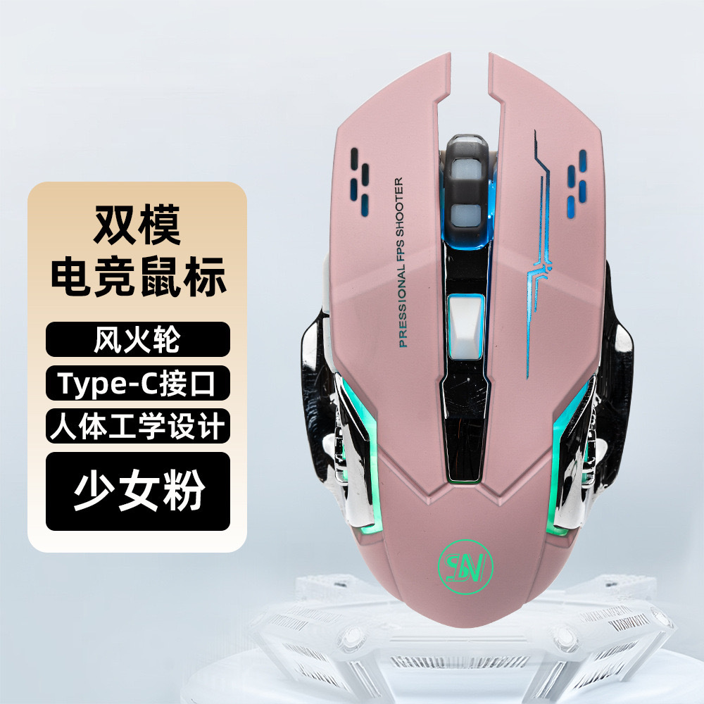 • E-스포츠 새로운 사일런트 핫휠 2.4G+ 블루투스 듀얼 모드 루미너스 걸리 핑크