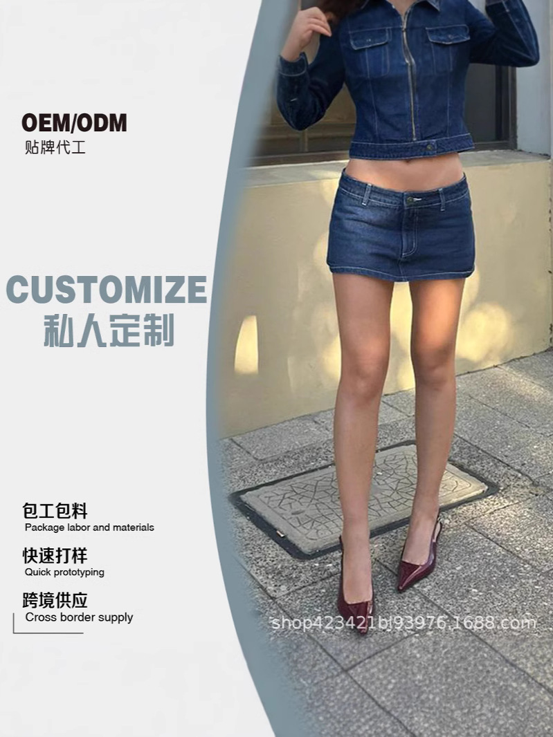 여성을위한 맞춤형 데님 짧은 치마 25 년 봄 새로운 낮은 허리 데님 미니 스커트 여성을위한 패션 섹시한 데님 짧은 치마스토어 가기