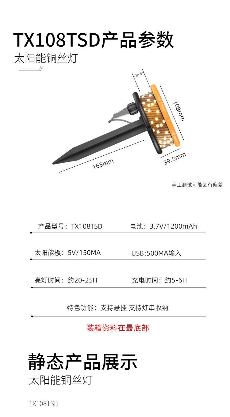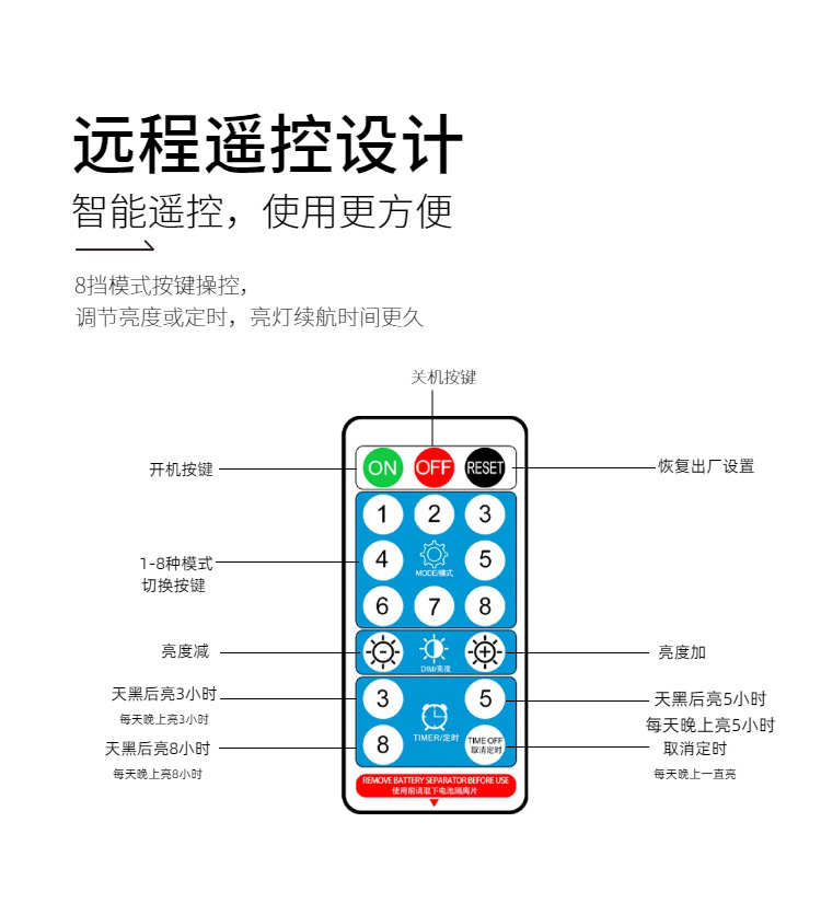• 가죽 코드 램프 8가지 모드 - 리모컨 + USB 충전(100개 조명 - 백색광)