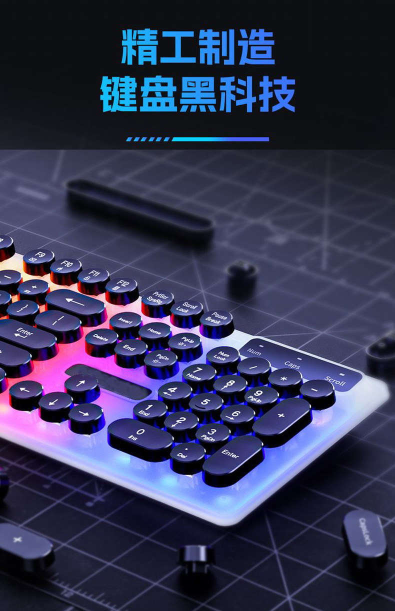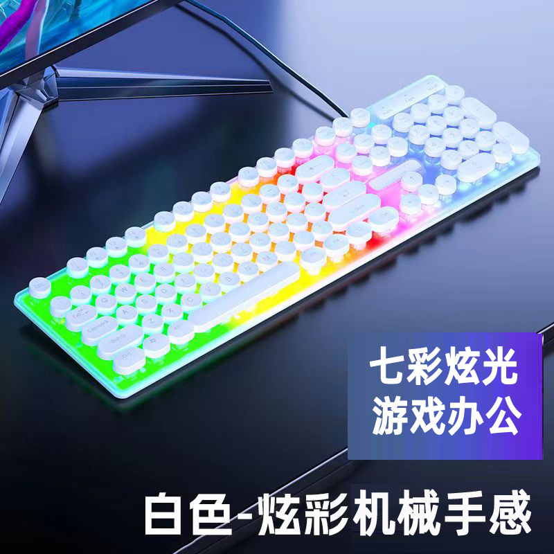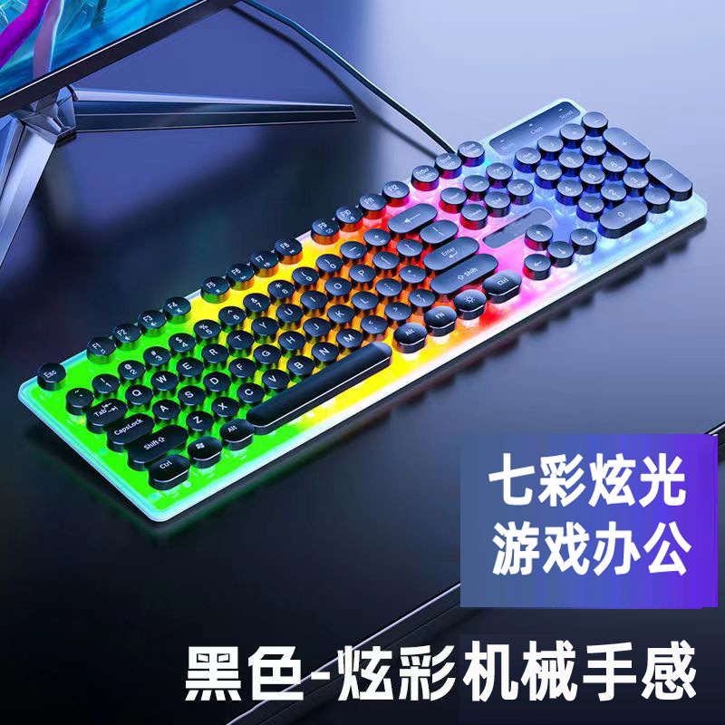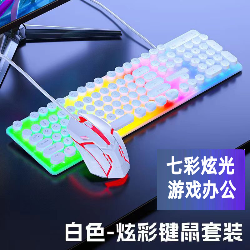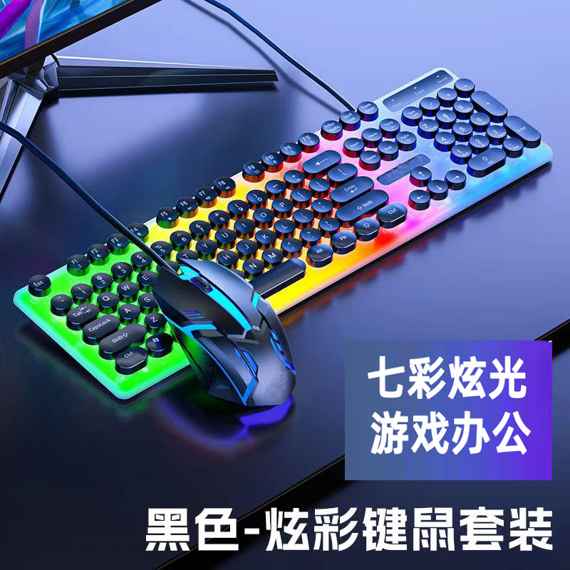 H600 케이블 펑크 빛나는 키보드 마우스 세트 러시아어 아랍어 빛나는 기계 핸드 게임 컴퓨터스토어 가기