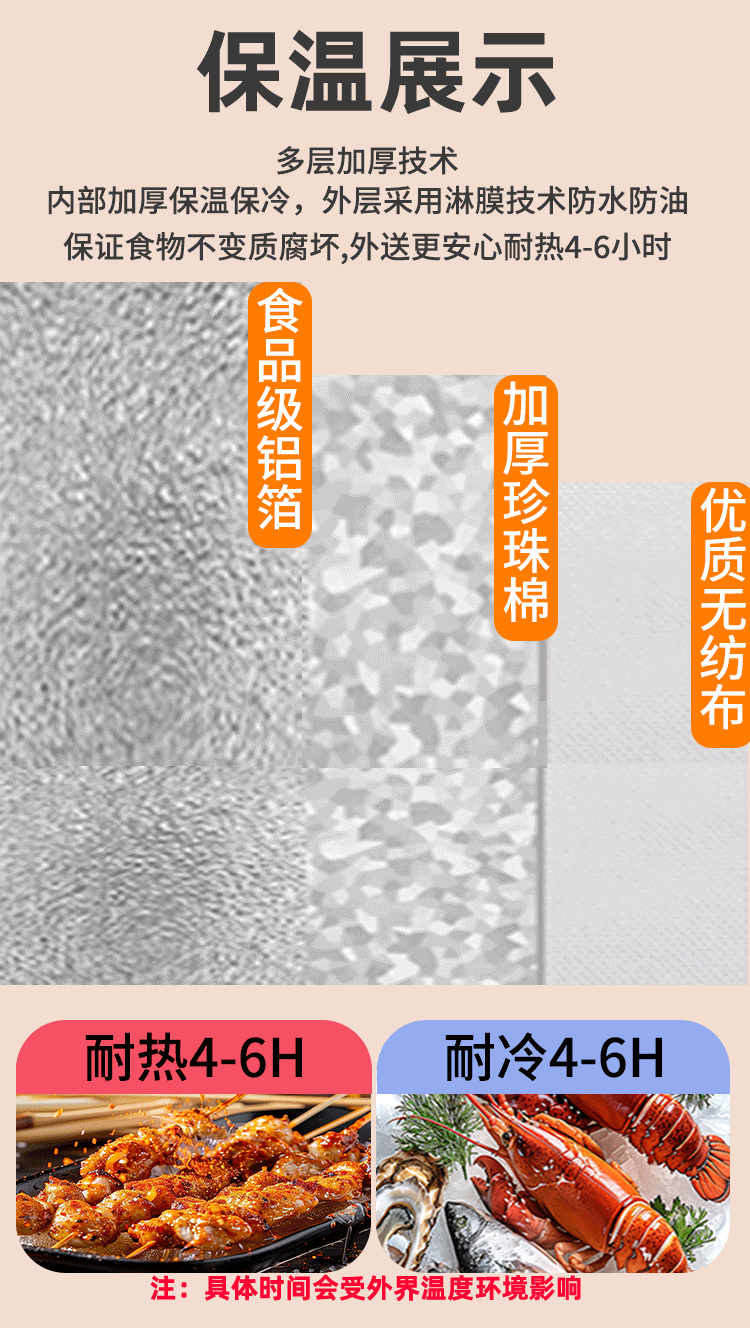 케이크 열 보존 가방 스테이크 바베큐 냉동 식품 테이크 아웃 디저트 두꺼운 알루미늄 호일 냉장 보존 가방 냉동고 가방 휴대용