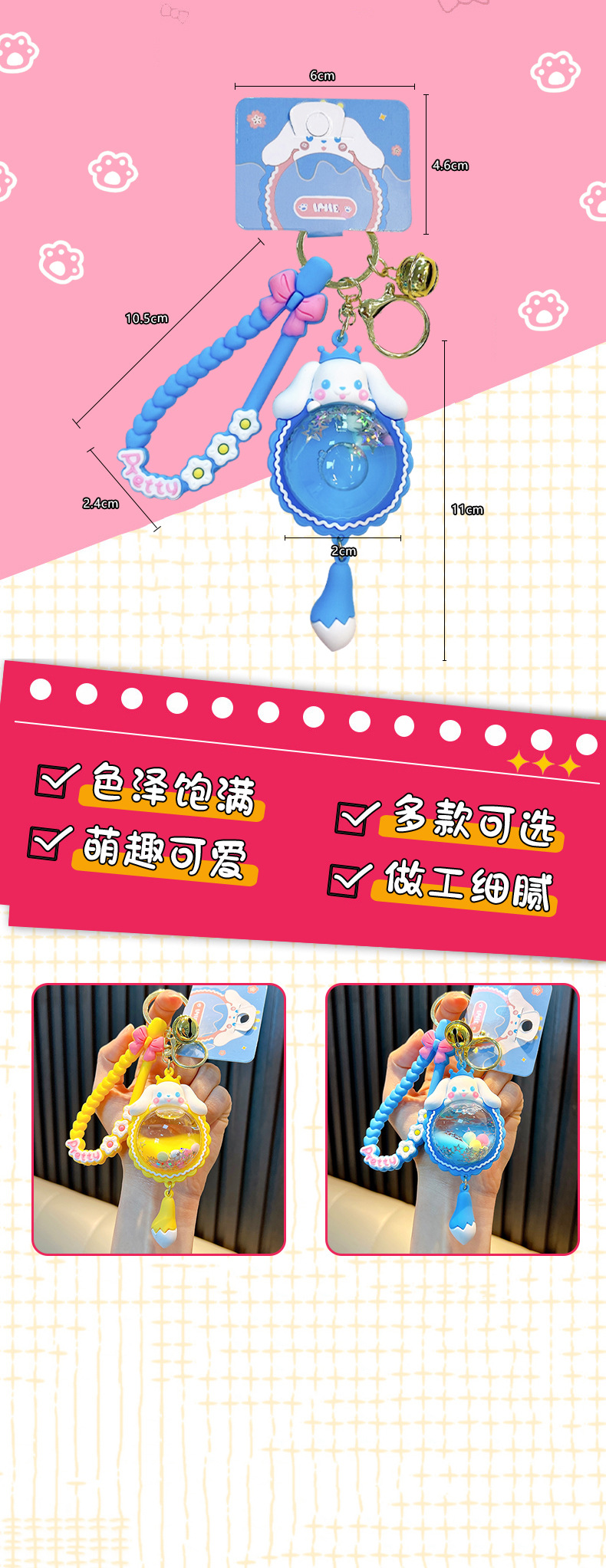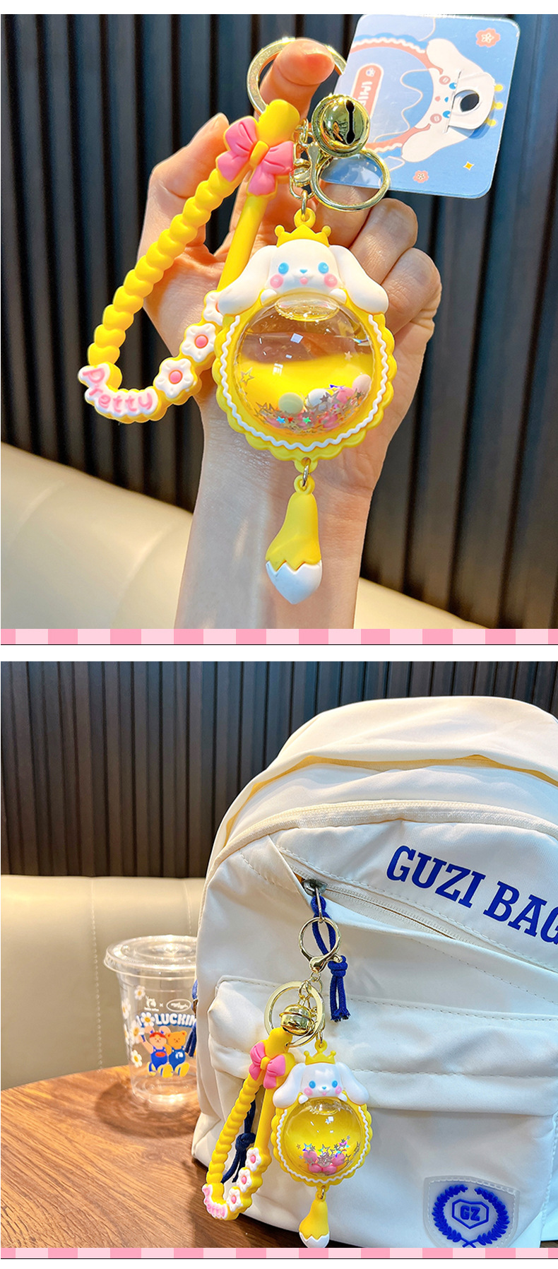 오일 입력 유구이 개 꿈 엘프 볼 키 체인 귀여운 크리스탈 볼 백팩 펜던트 자동차 키 체인 작은 선물