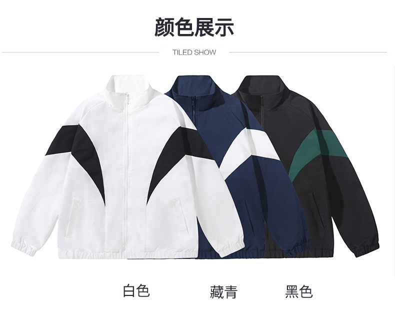 2025 봄과 가을 국경 간 새로운 남성 스탠드 칼라 캐주얼 재킷 컬러 인서트 재킷 느슨한 유행 남성과 여성 운동복 공장스토어 가기