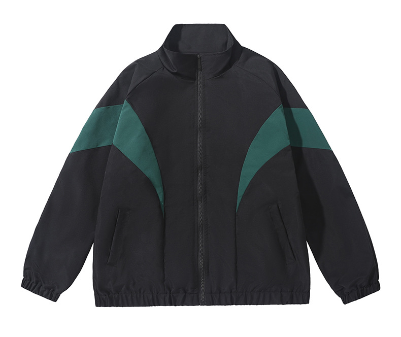 2025 봄과 가을 국경 간 새로운 남성 스탠드 칼라 캐주얼 재킷 컬러 인서트 재킷 느슨한 유행 남성과 여성 운동복 공장