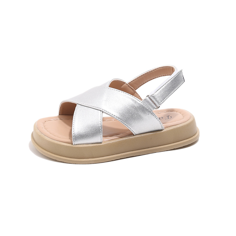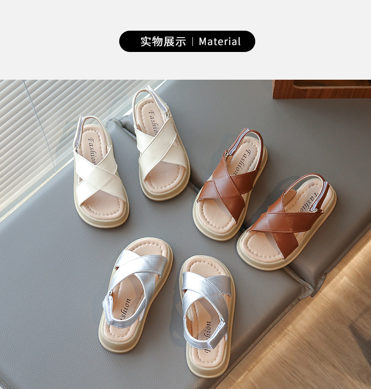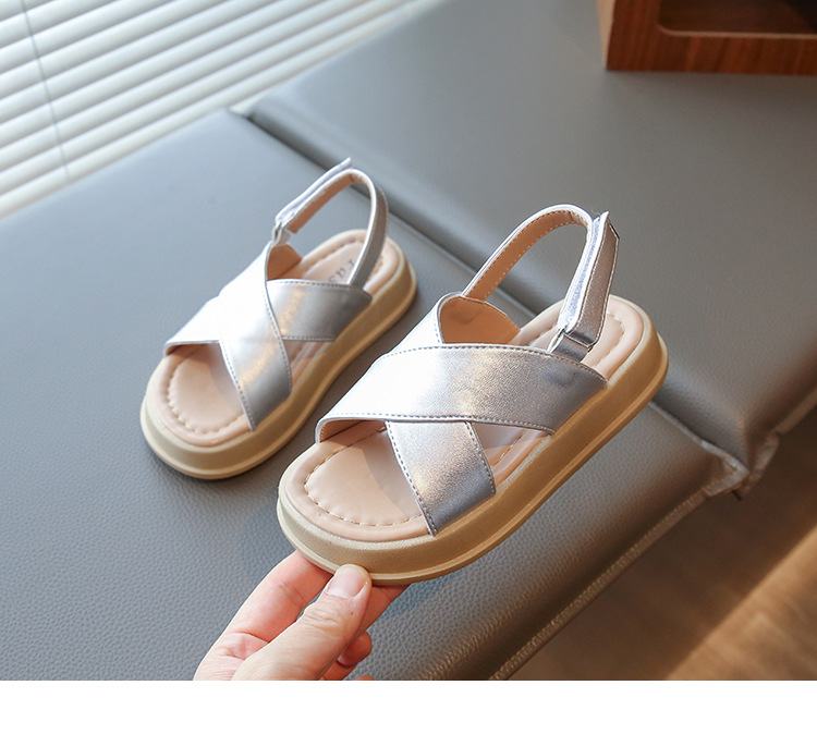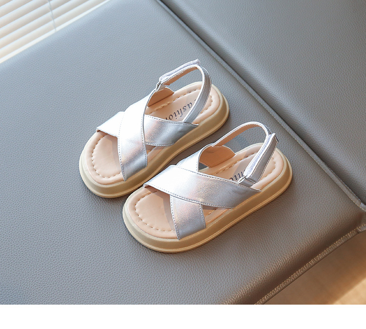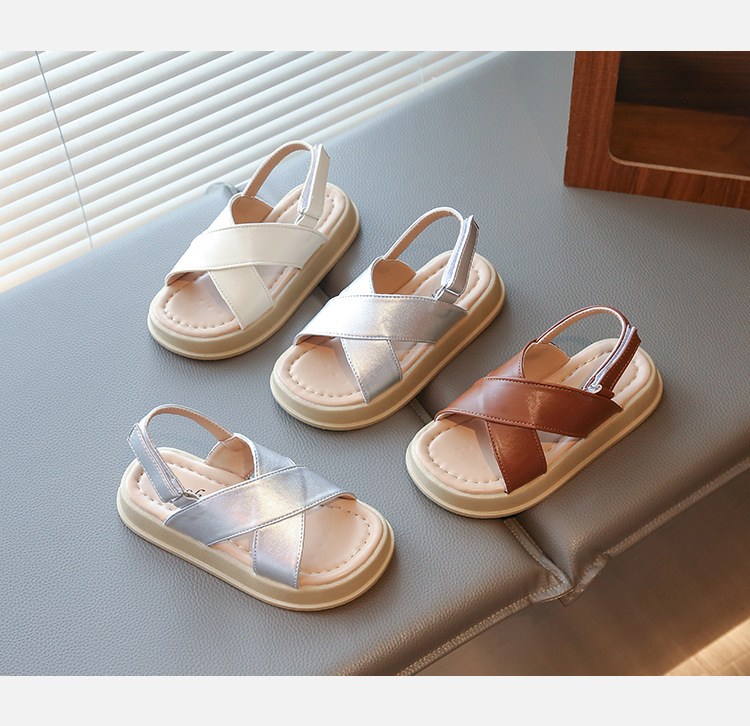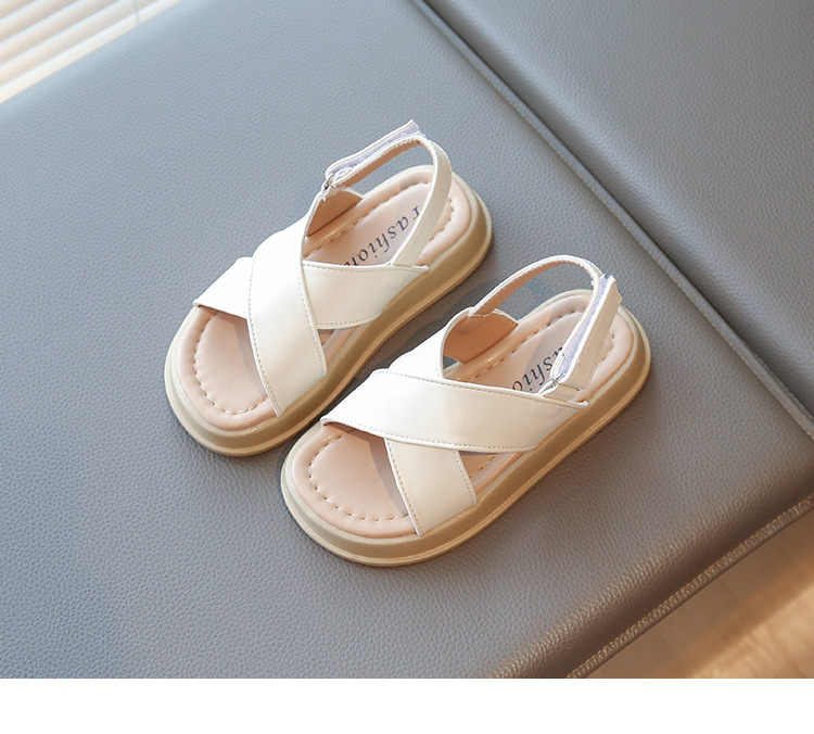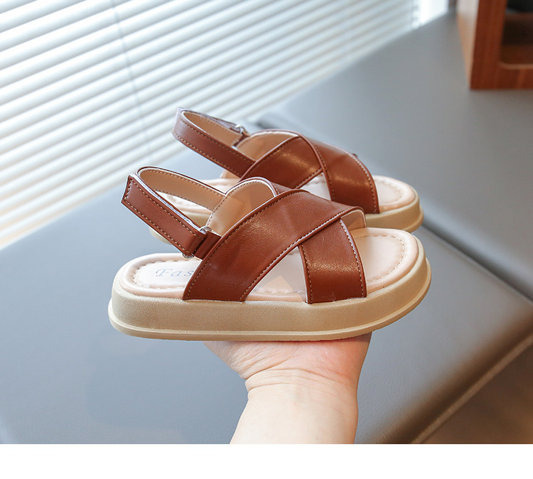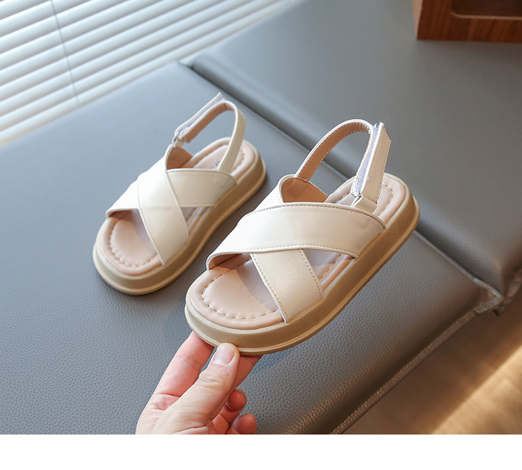 어린이 샌들 여성 여름 발가락 새로운 한국 스타일 간단한 크로스 스트랩 프랑스 싱글 레이어 신발 걸스 올매치 부드러운 비치 신발
