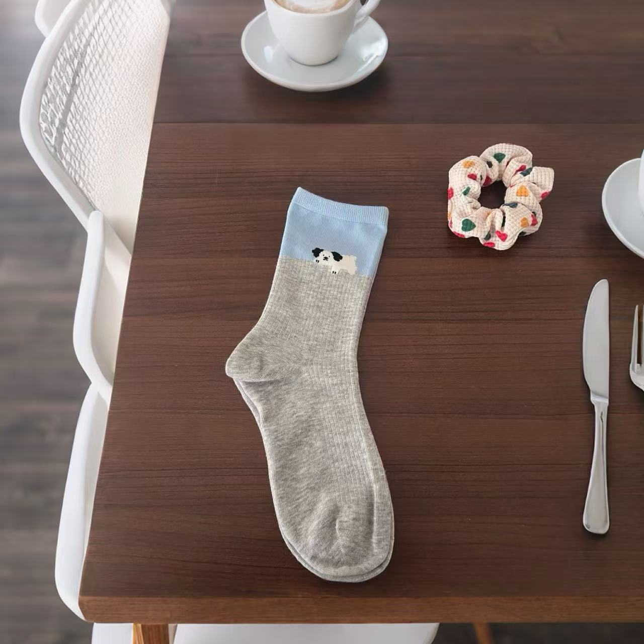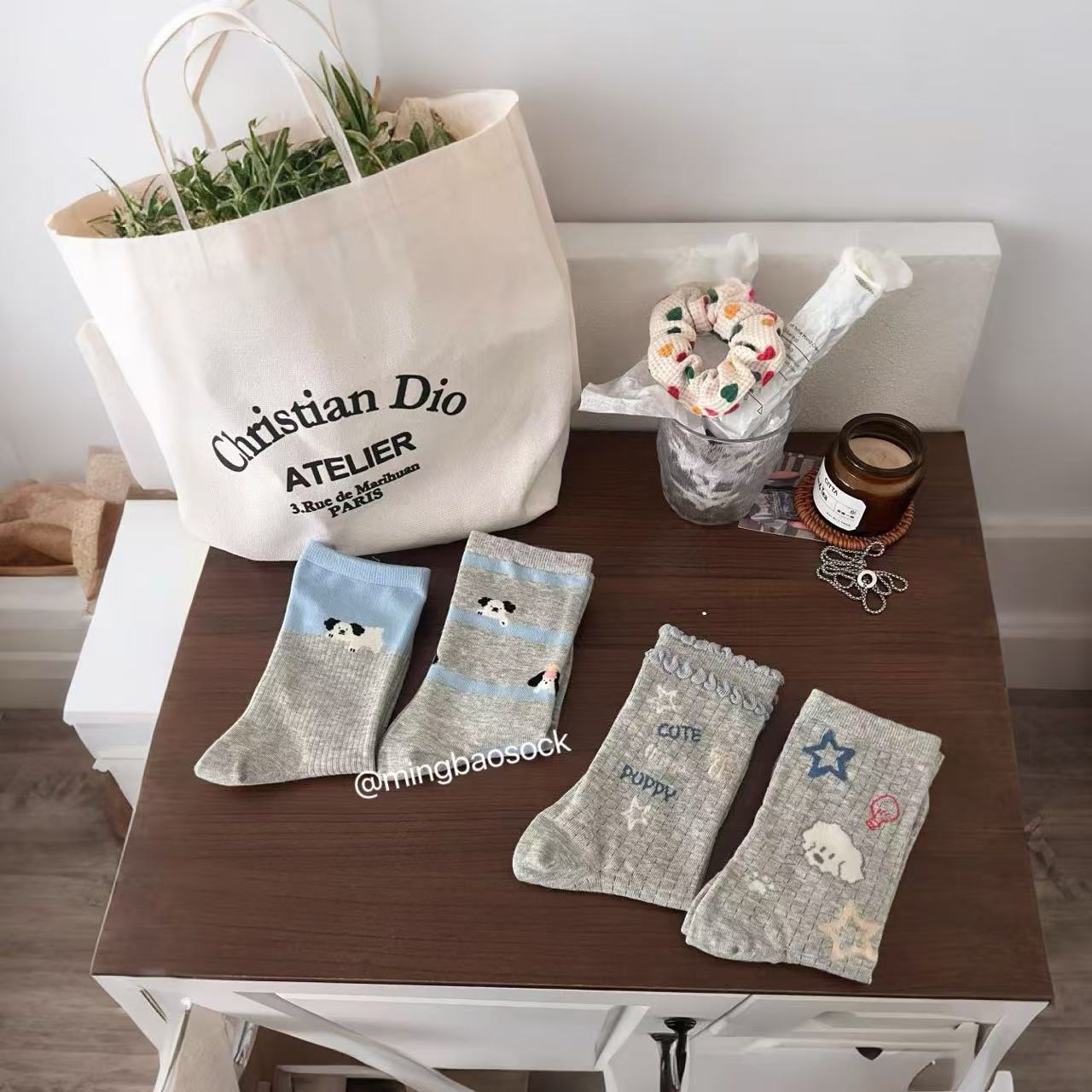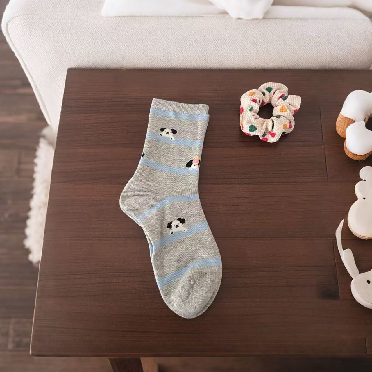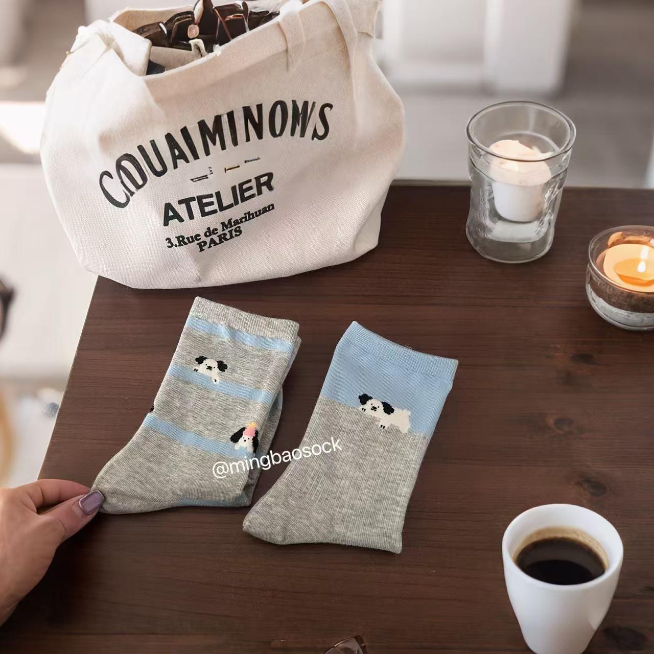 귀여운 분위기 ~ 봄과 여름 얇은 양말 여성 한인 줄무늬 강아지 양말 면 뼈없는 여성 양말스토어 가기