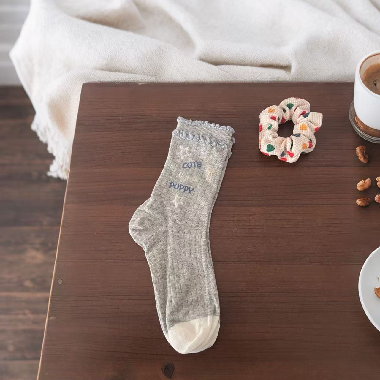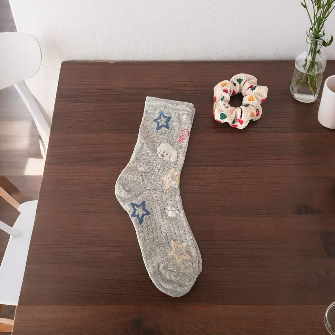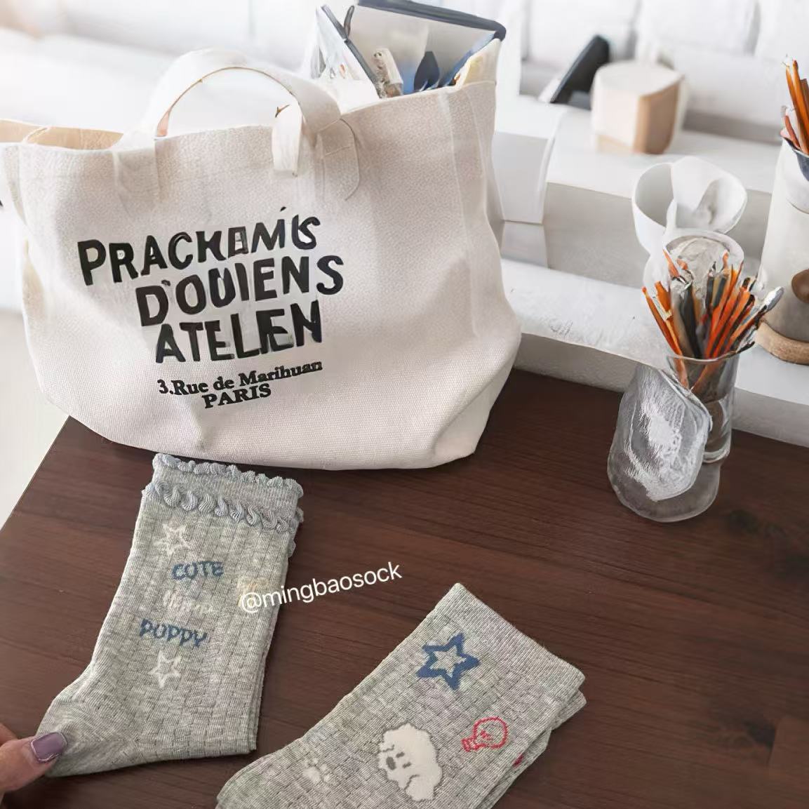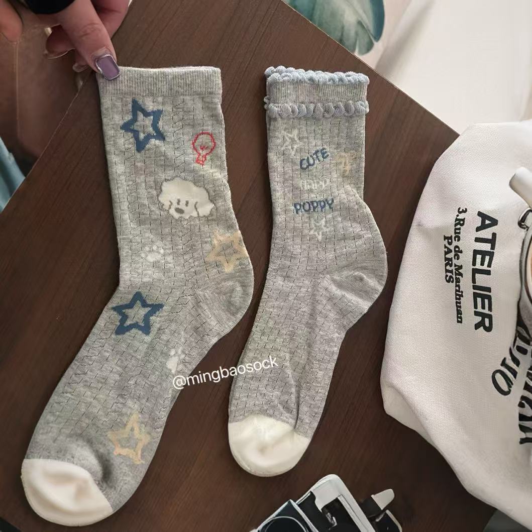 귀여운 분위기 ~ 봄과 여름 얇은 양말 여성 한인 줄무늬 강아지 양말 면 뼈없는 여성 양말스토어 가기