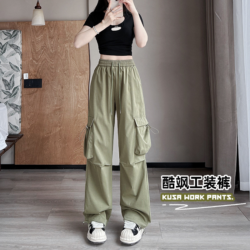 여성용 작업복 2025 봄, 가을 새로운 스타일 하이 웨이스트 루즈 와이드 레그 소형 여름 속건성 등산 스포츠 바지스토어 가기