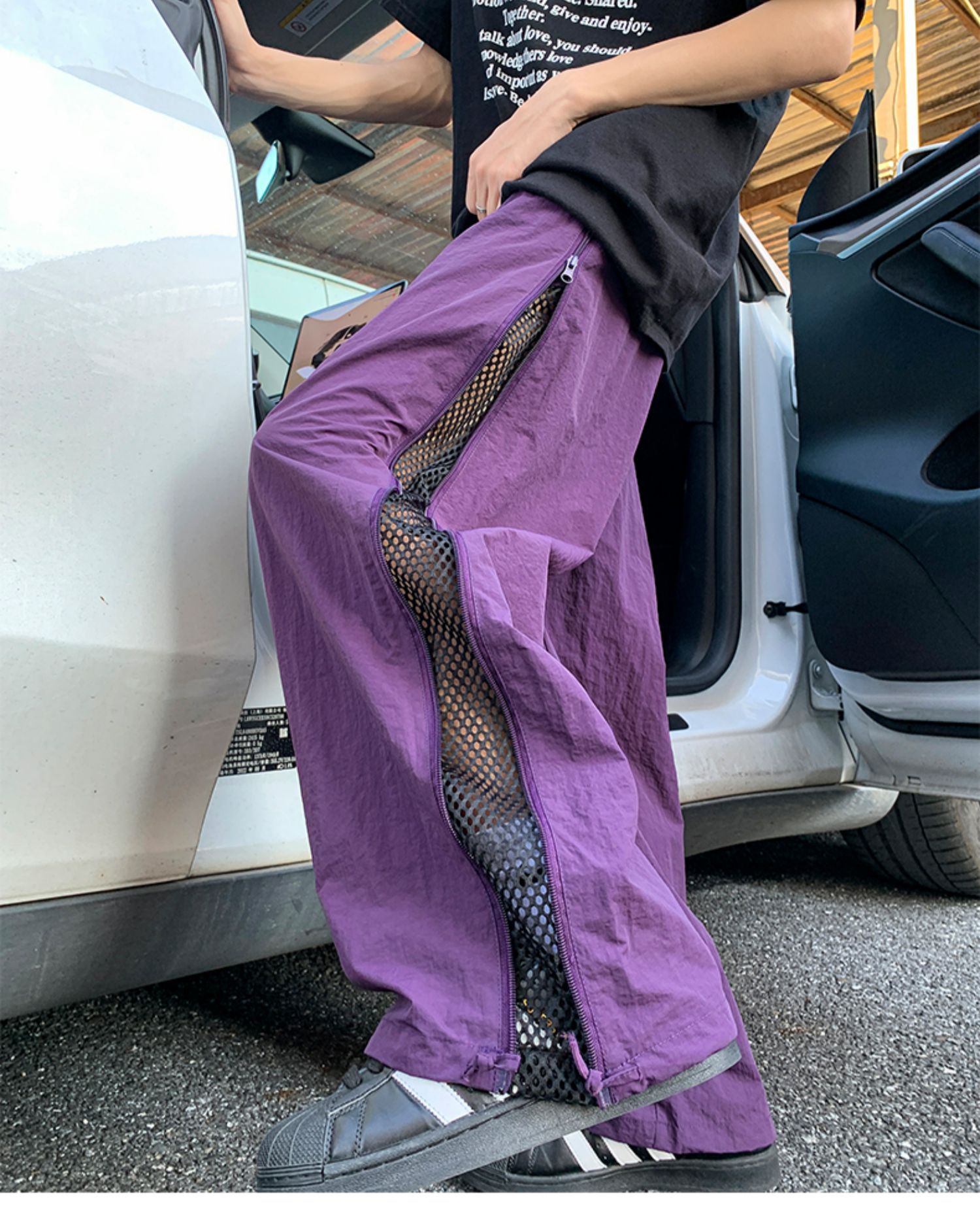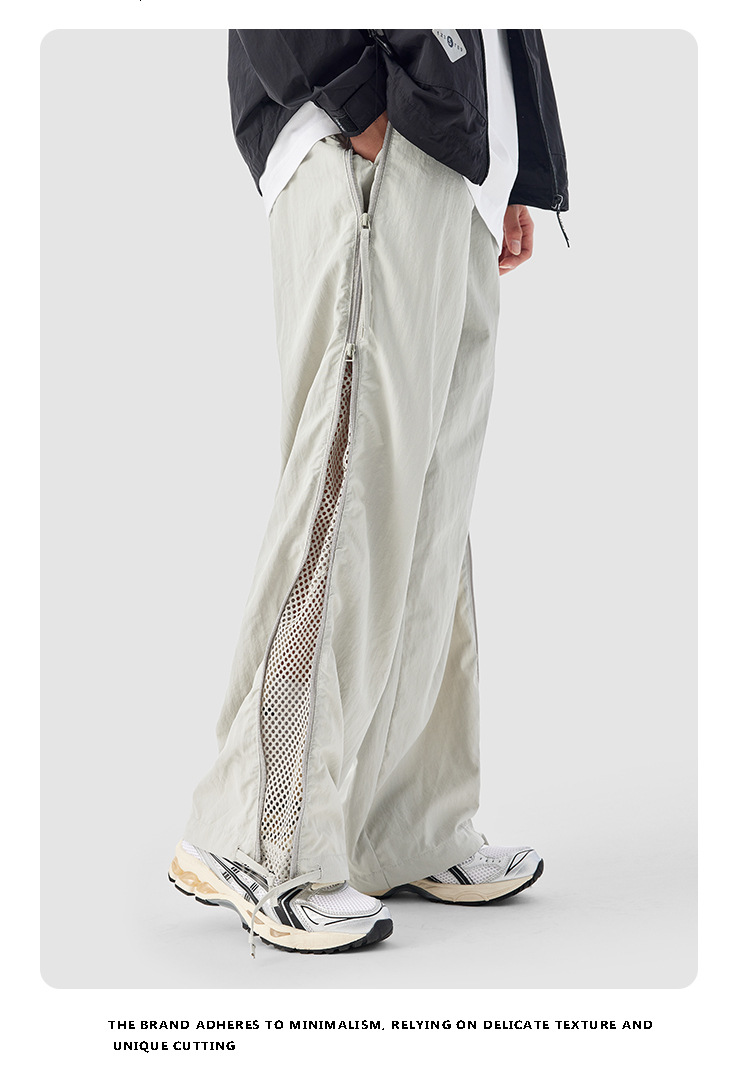 봄, 가을 남성용 아메리칸 아웃도어 메쉬 통기성 속건성 충전 바지 새로운 아이스 실크 파라트리퍼스 오버올 스트레이트 와이드 팬츠