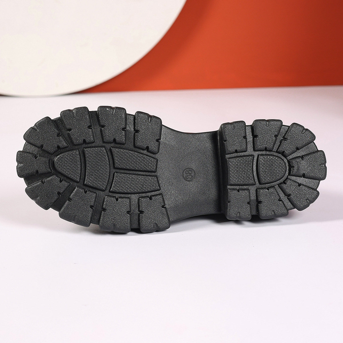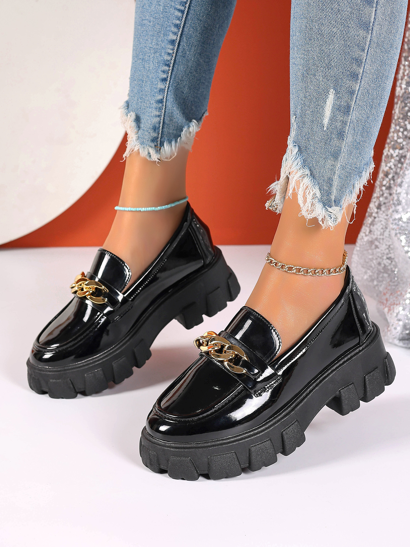 두꺼운 바닥 두꺼운 영국 스타일 가죽 신발 여성의 2024 새로운 겨울 빈티지 금속 버클 슬립 온 로퍼