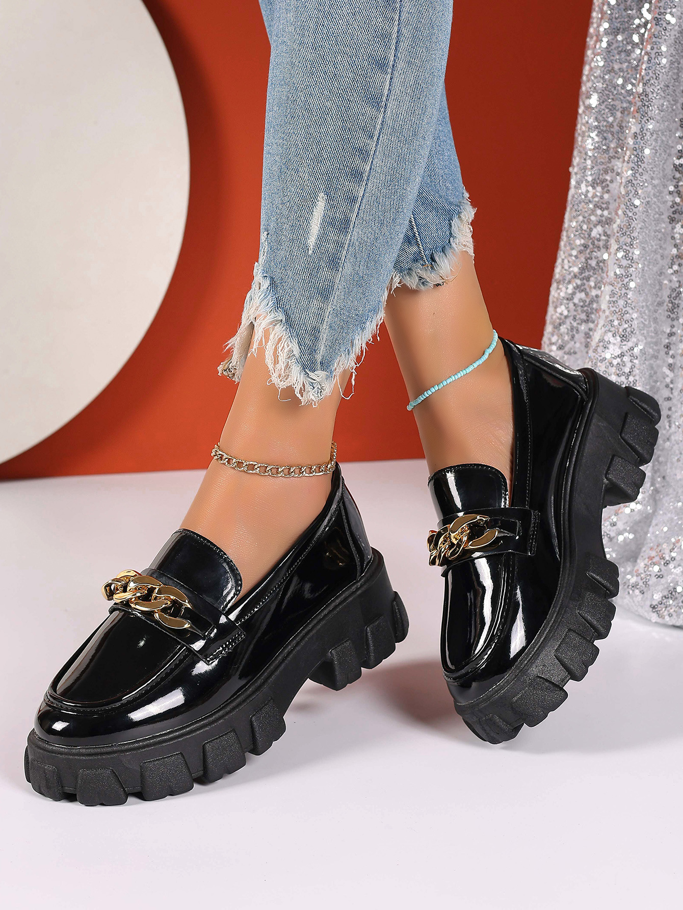 두꺼운 바닥 두꺼운 영국 스타일 가죽 신발 여성의 2024 새로운 겨울 빈티지 금속 버클 슬립 온 로퍼스토어 가기