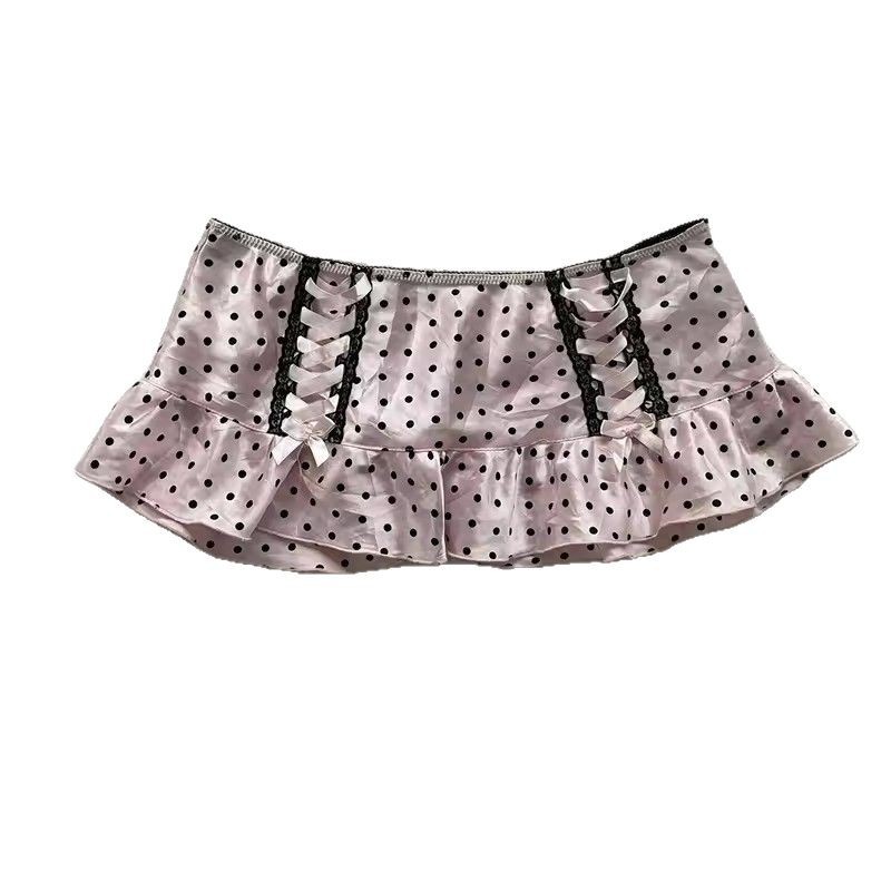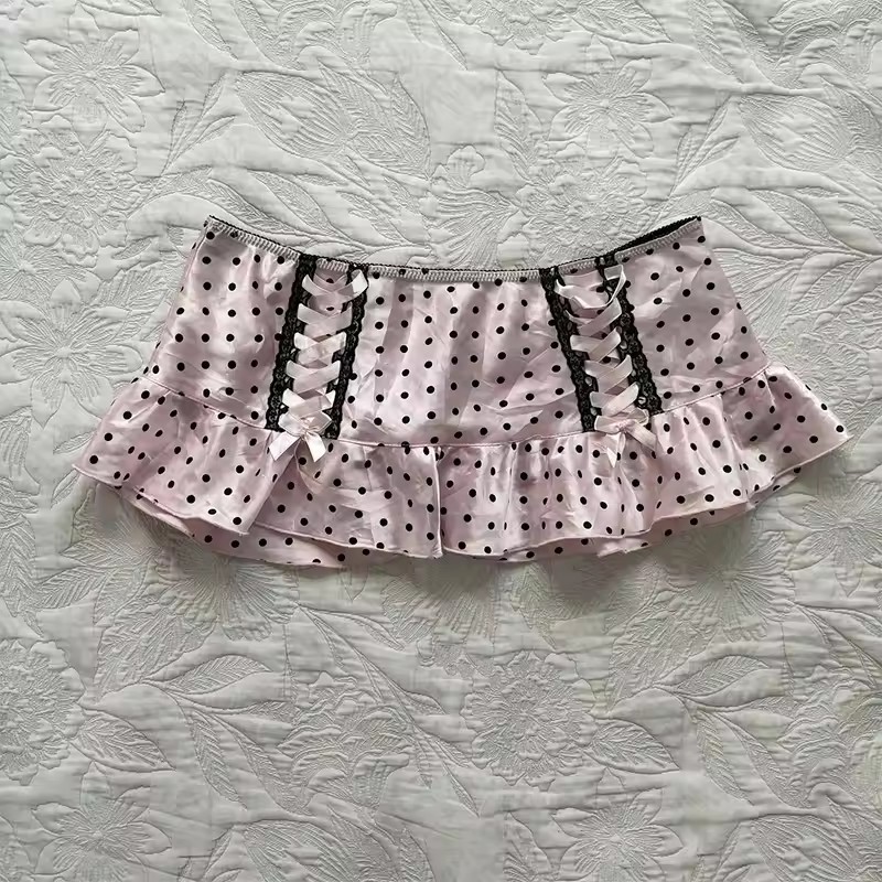 2025년 여름 신상 달콤하고 매콤한 스타일 슬림핏 스트랩 도트 핑크 미니 스커트