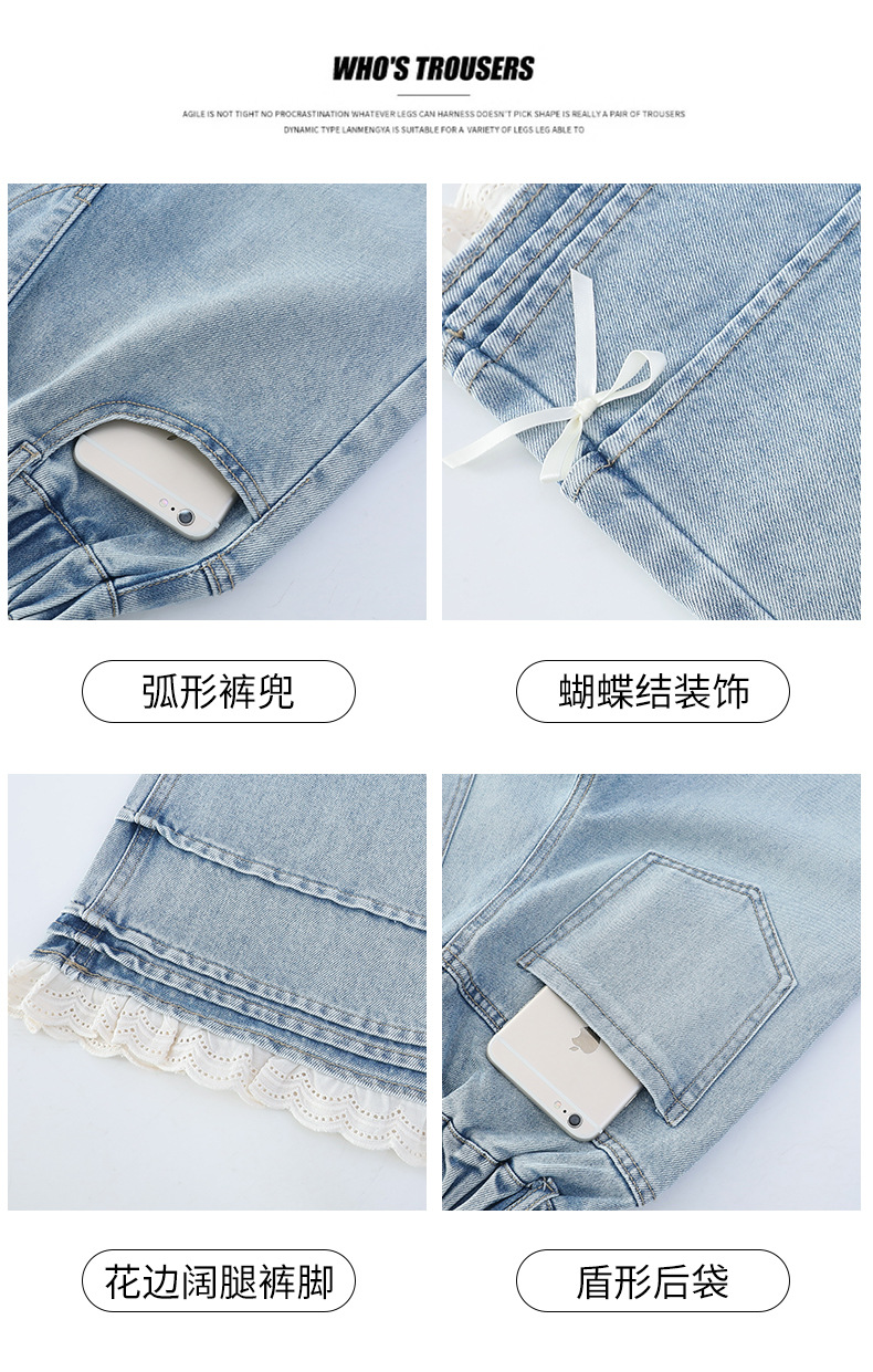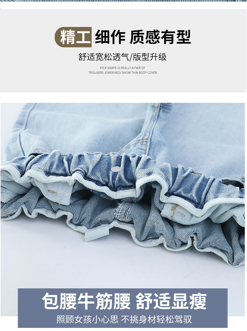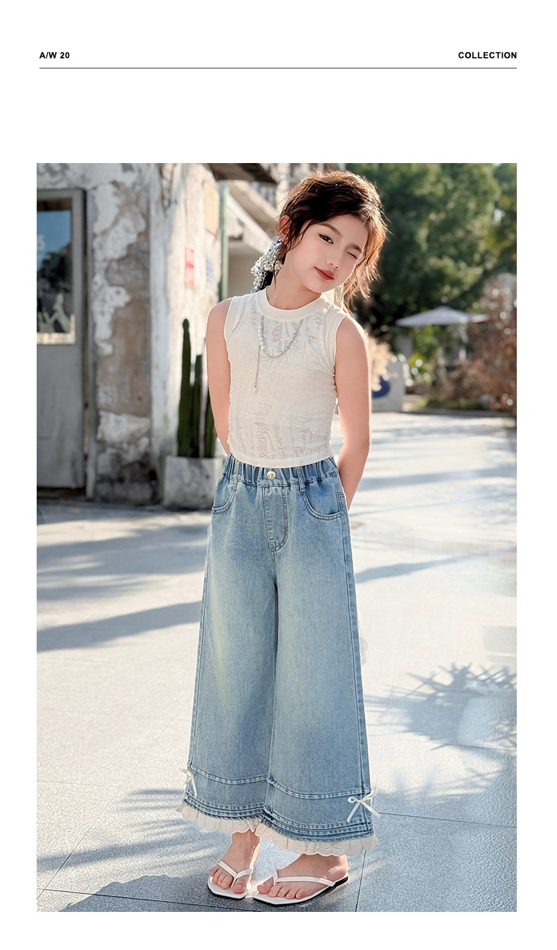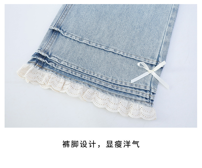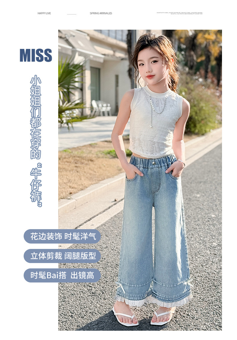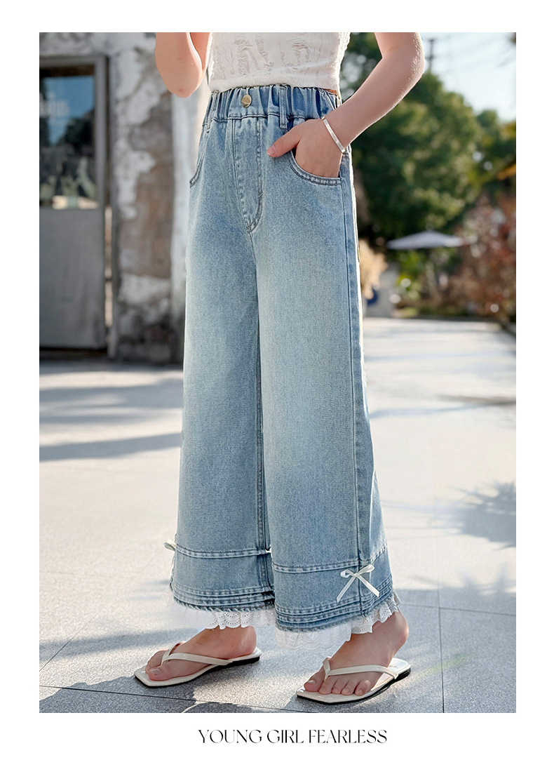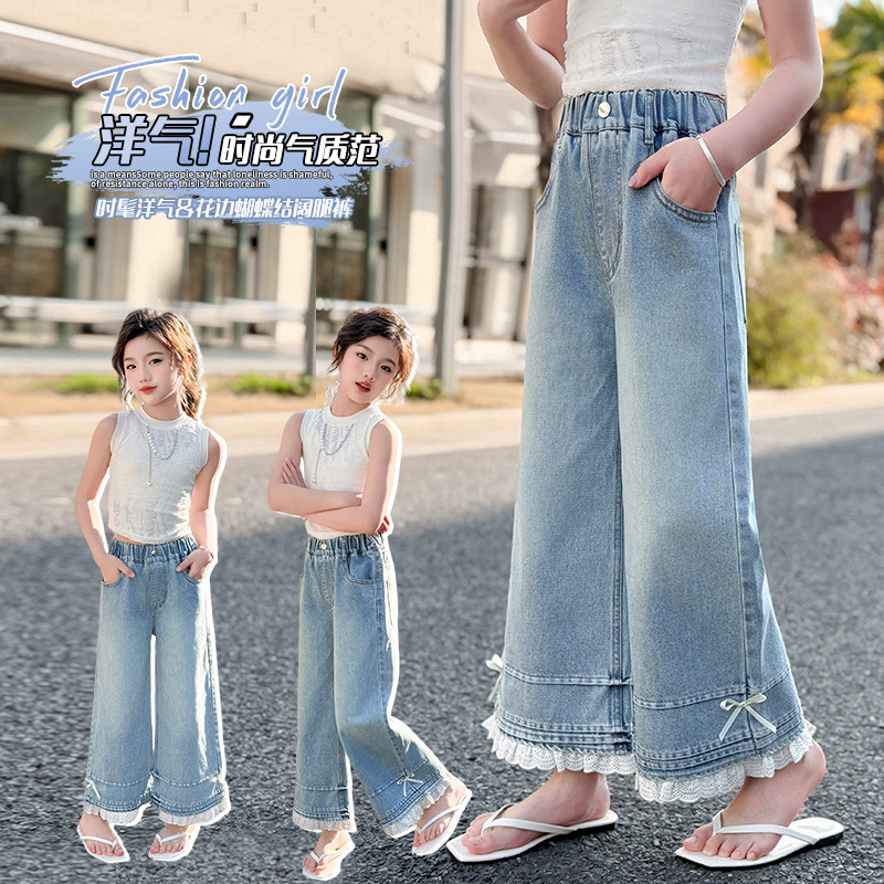 소녀 청바지 여름 2025 새로운 어린이 레이스 바지 얇은 소녀 큰 어린이 스트레이트 와이드 다리 바지 여름스토어 가기