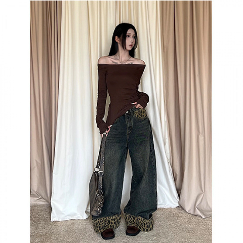 여성용 아메리칸 레트로 레오파드 프린트 컬 진 플러스 사이즈 2025 가을 겨울 새로운 루즈 슬리밍 스트레이트 와이드 레그 팬츠스토어 가기