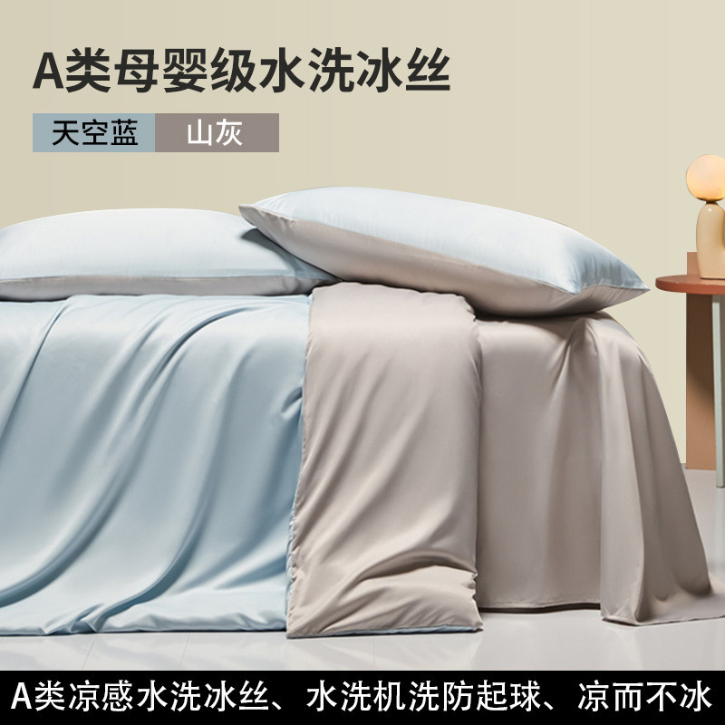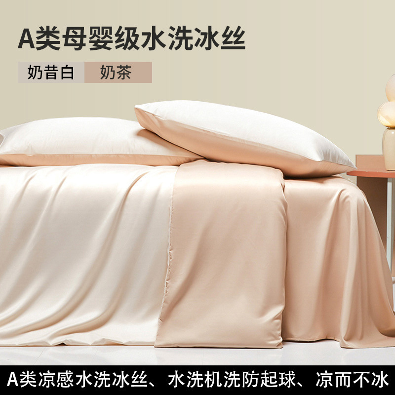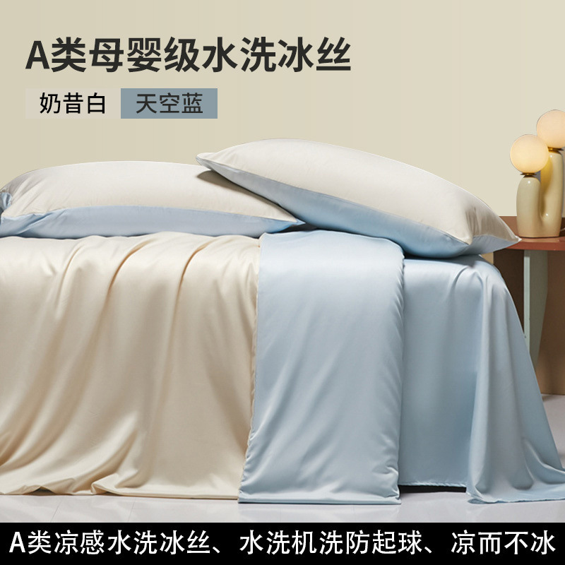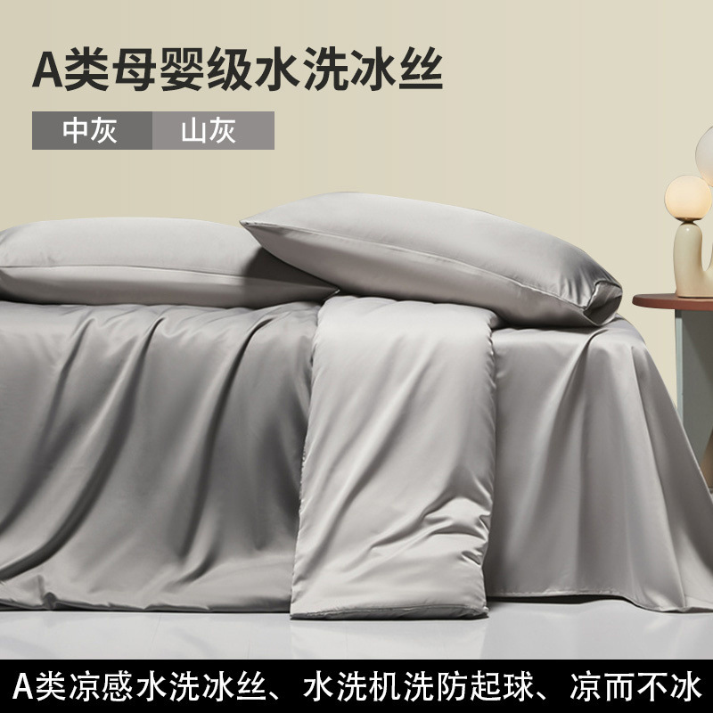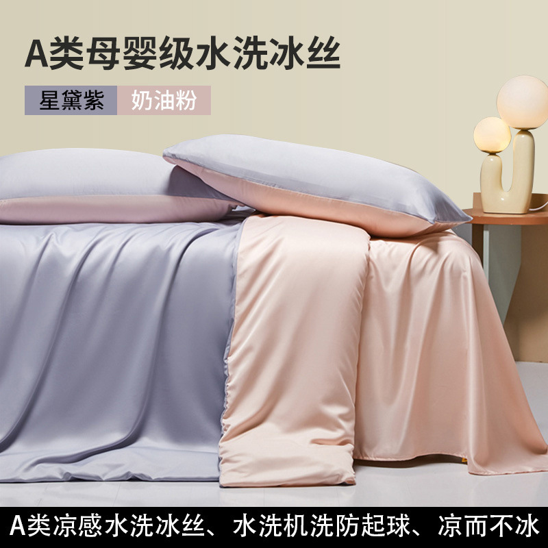 여름 씻은 얼음 실크 이불 커버 싱글 시트 사람 150x200x230 여름 부드러운 나체 잠자는 이불 커버 4 피스 세트 4