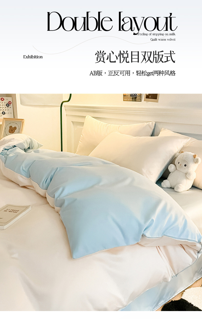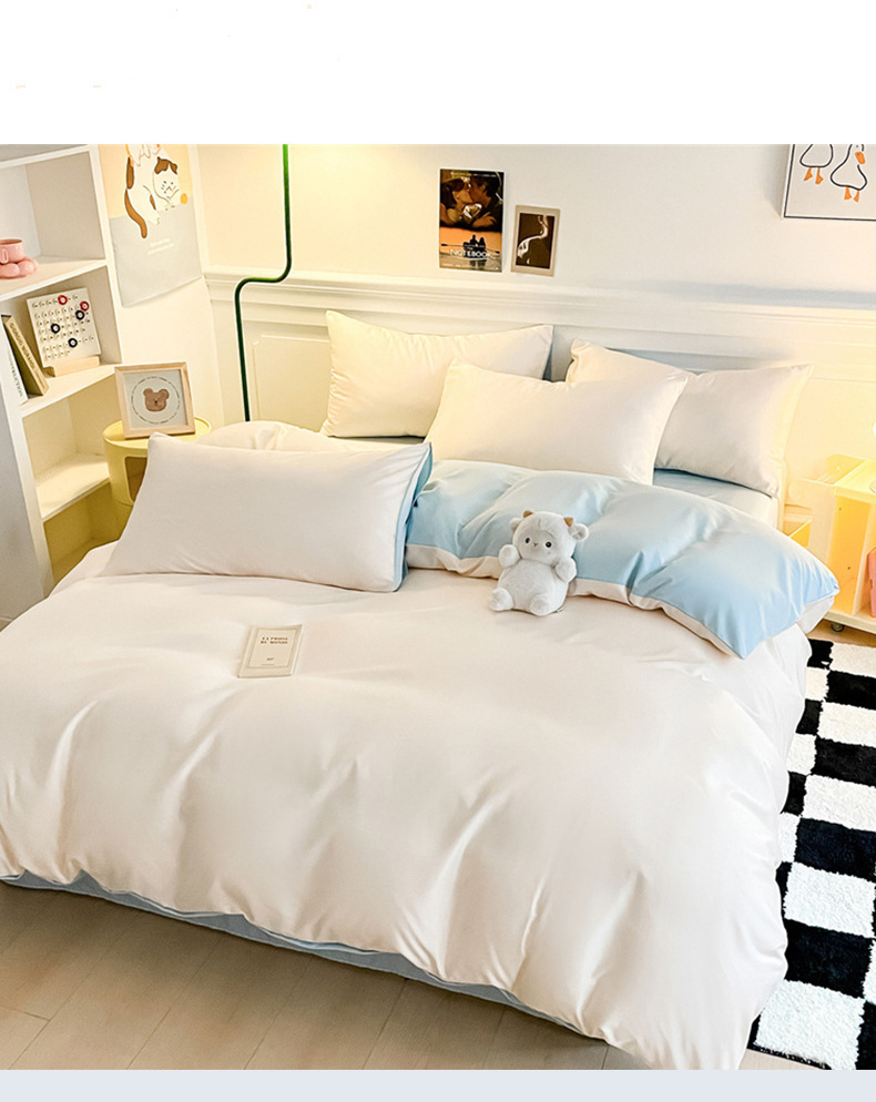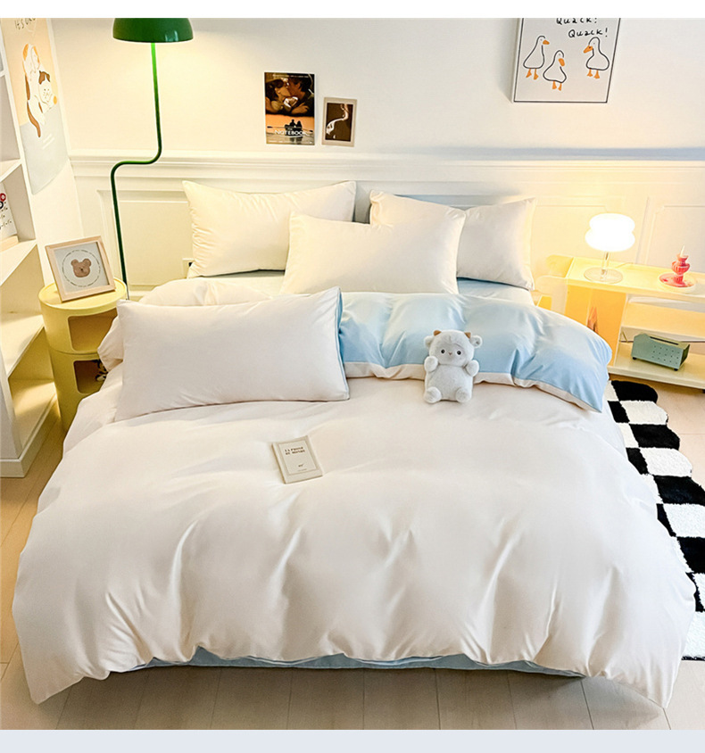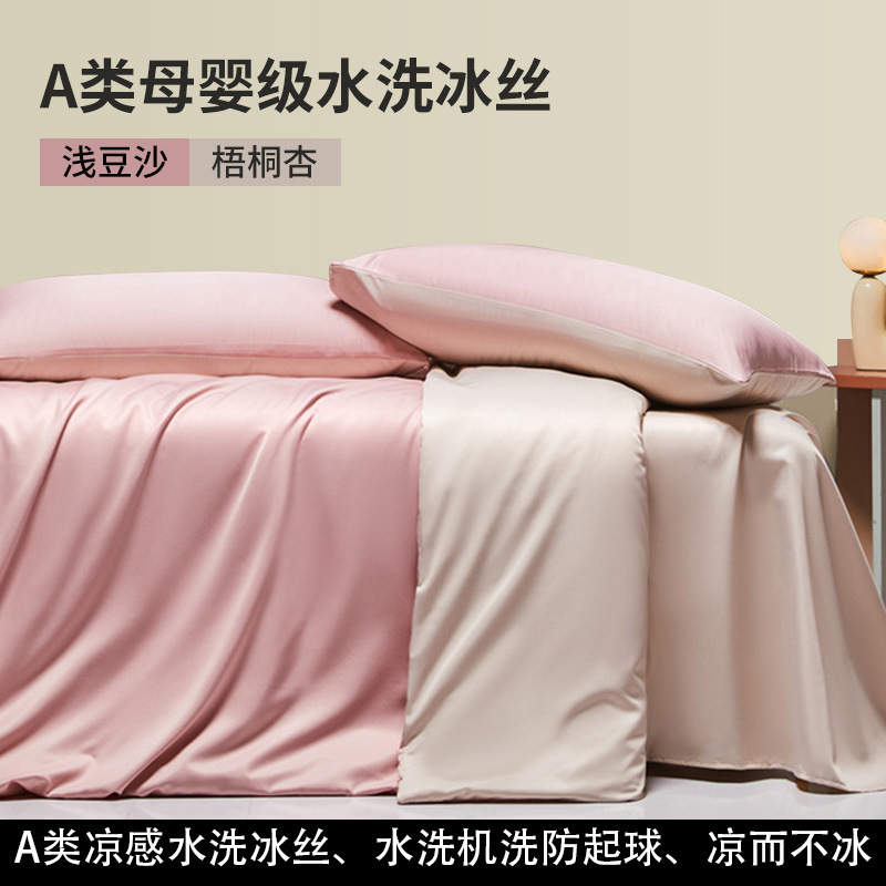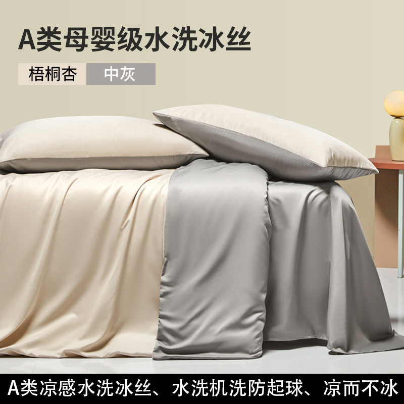 여름 씻은 얼음 실크 이불 커버 싱글 시트 사람 150x200x230 여름 부드러운 나체 잠자는 이불 커버 4 피스 세트 4