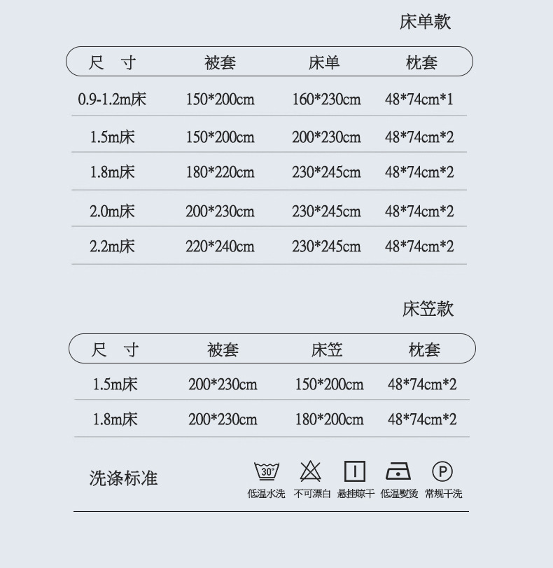 • 2.0m 침대 [시트 4개 세트] - 220x240cm 이불에 적합