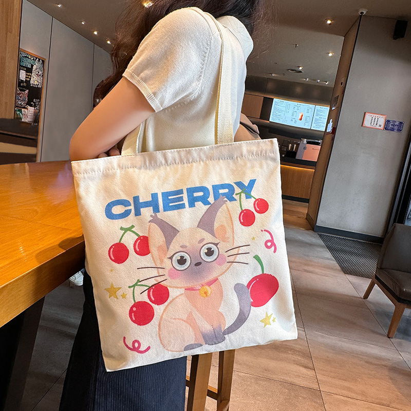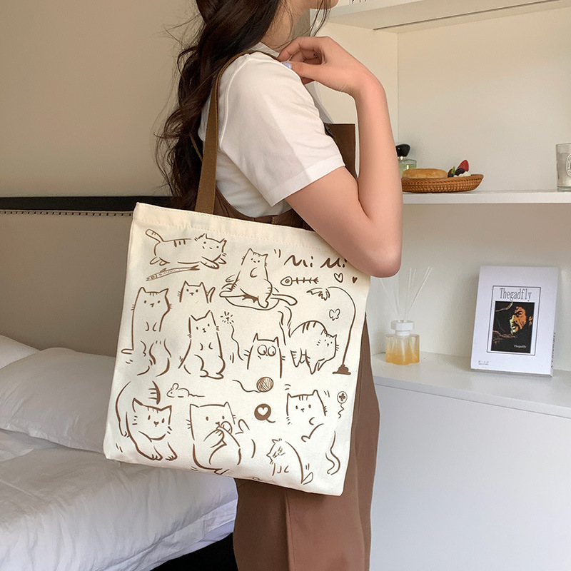 • 옥양목 고양이 나들이 (지퍼 있음, 내부 가방 없음, 양면 인쇄)