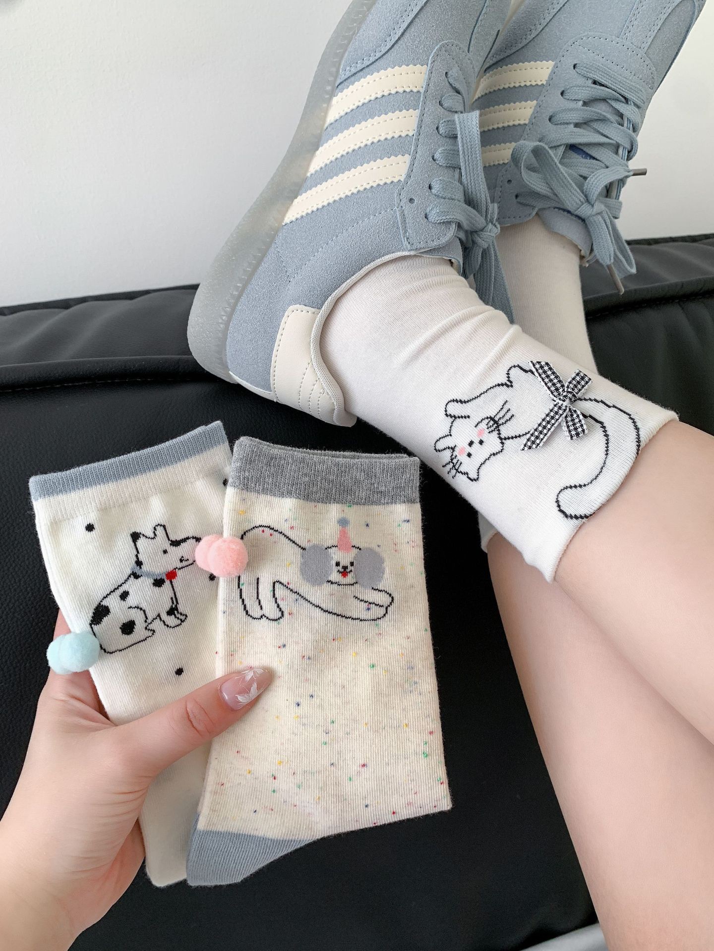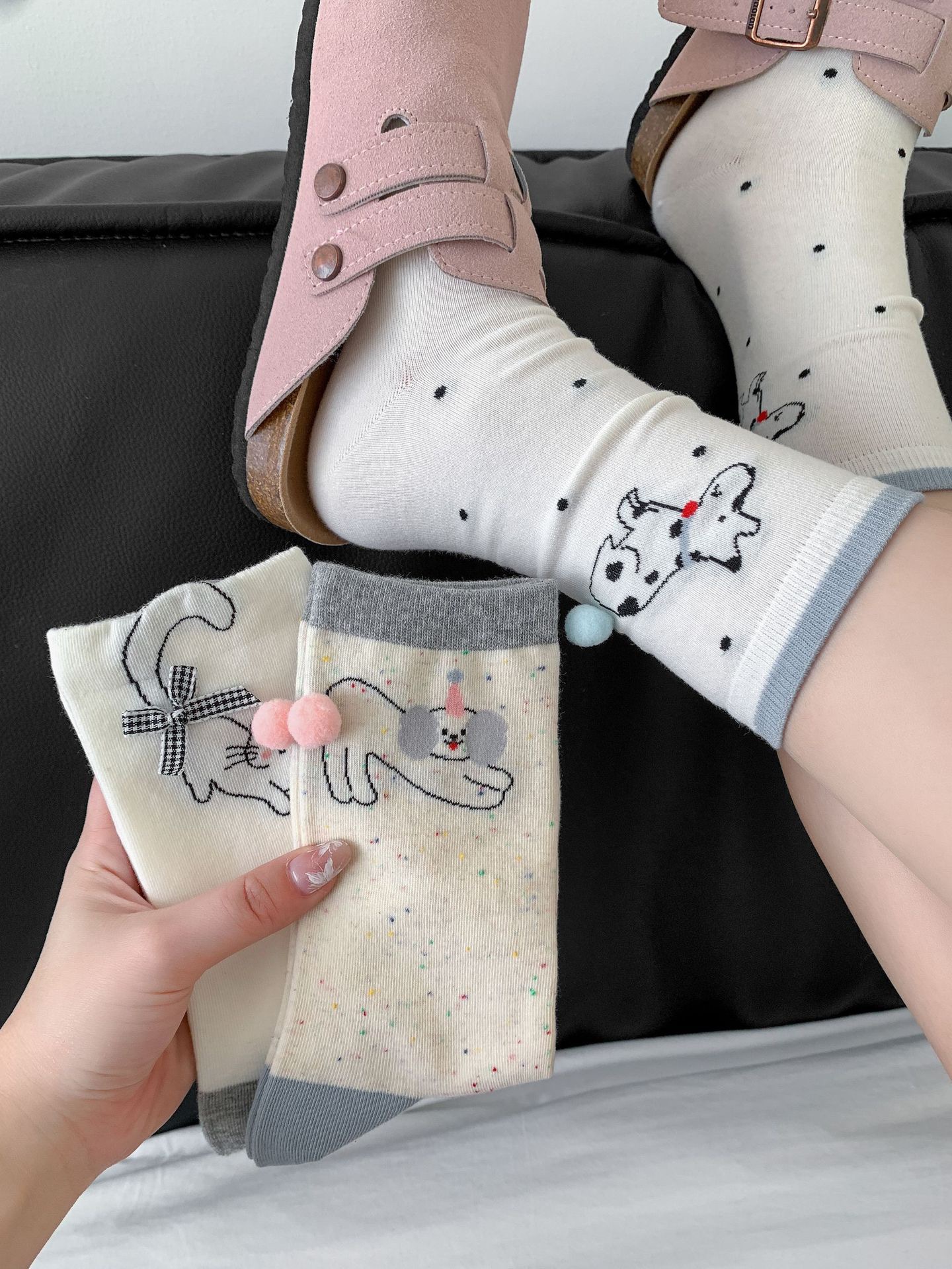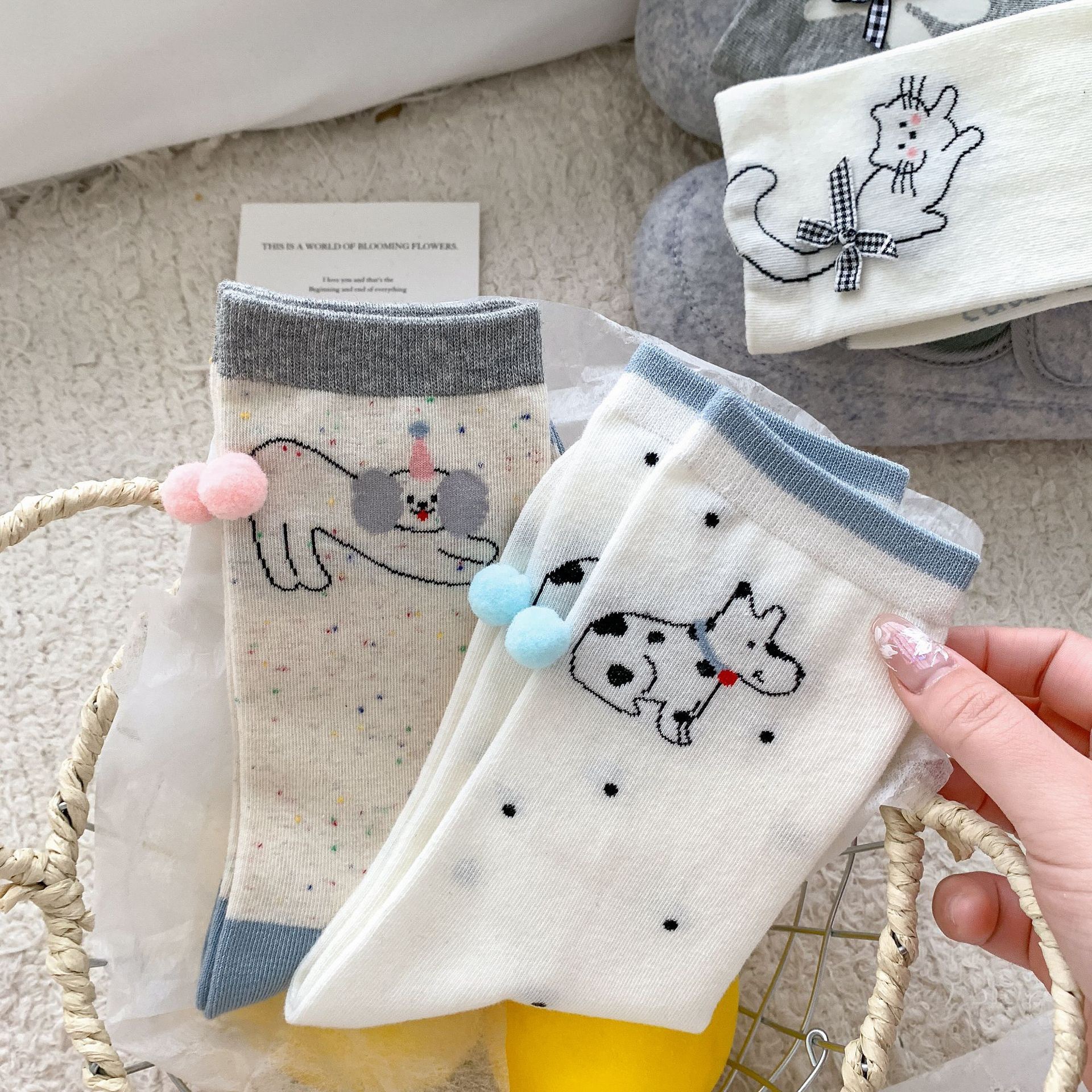 양말 여성 봄과 여름 입체 꼬리 헤어 볼 뼈없는 중간 튜브 양말 만화 동물 활 고양이와 강아지면 양말스토어 가기