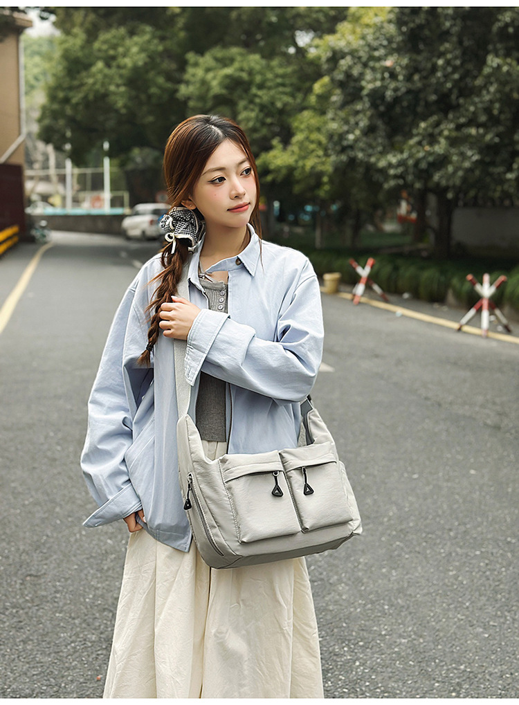 여성 심플 스타일 대용량 숄더백 학생 통근 캐주얼 크로스백 야외 경량 다용도 트렌디 백