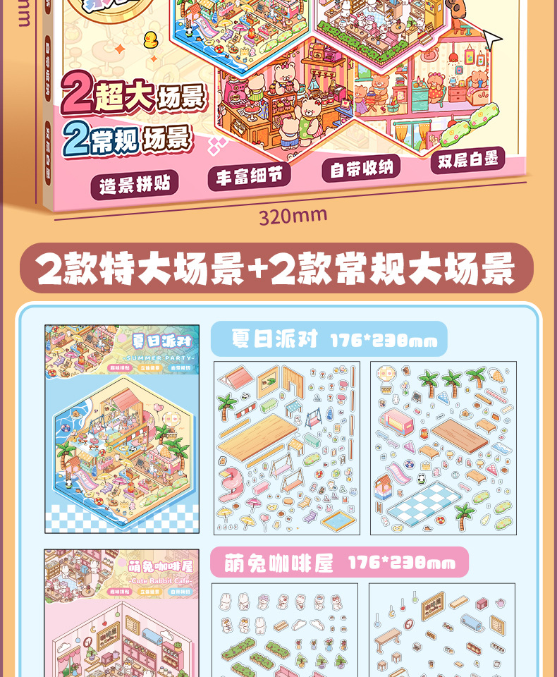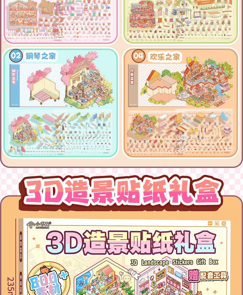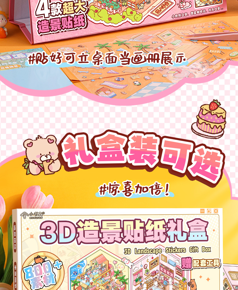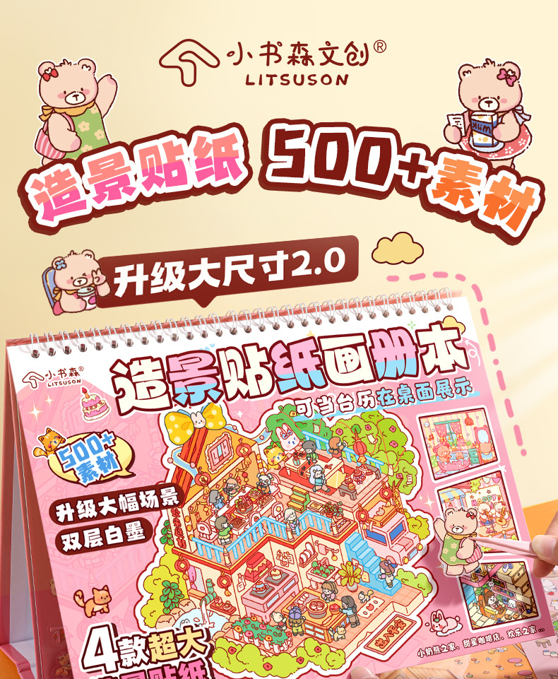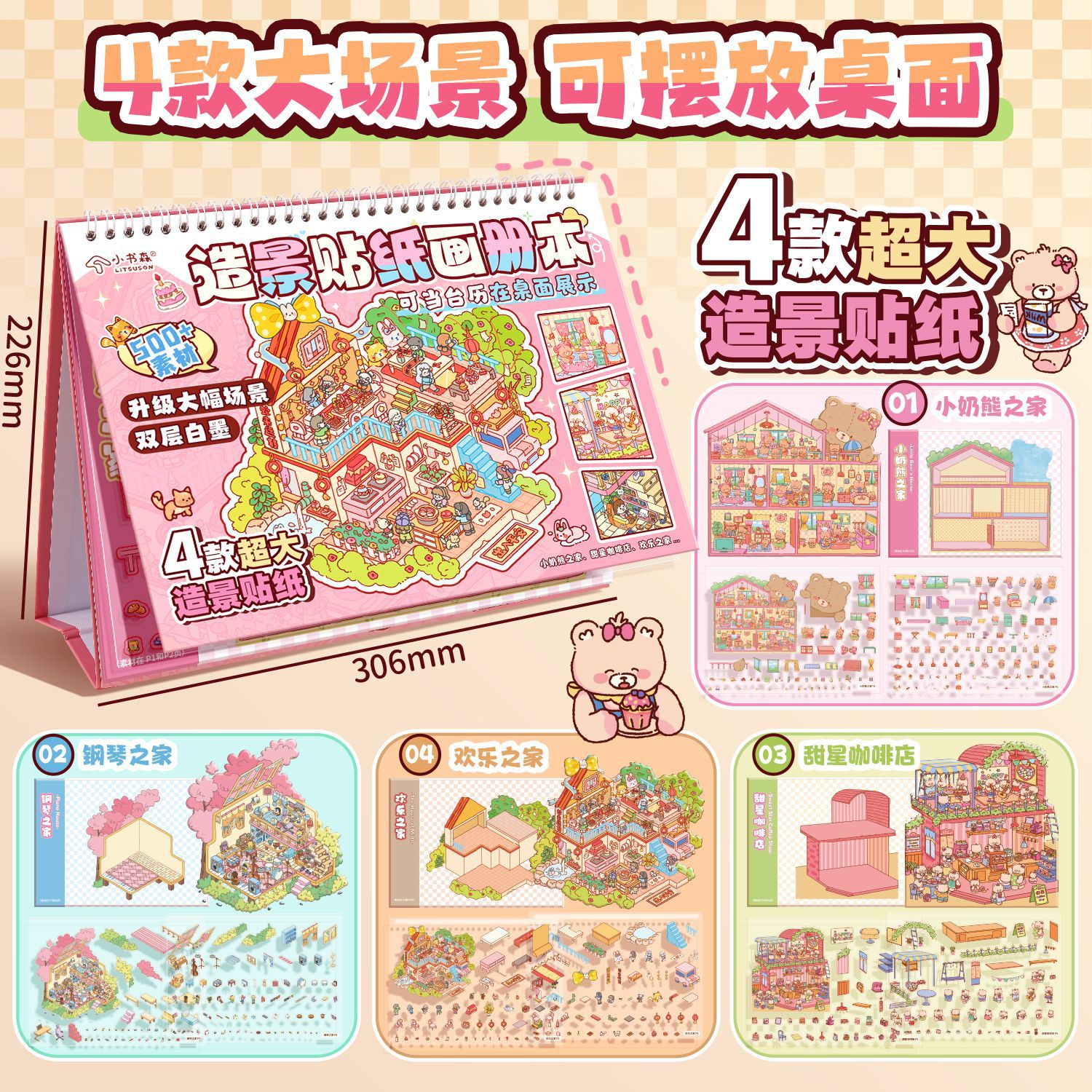 새로운 조경 스티커 대형 소형 장면 컬렉션이 수제 DIY 귀여운 손 계정 소재 감압 장난감스토어 가기