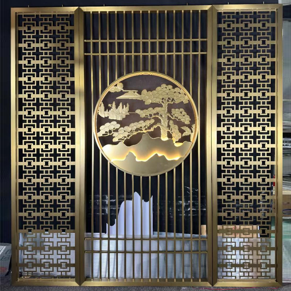 경량 럭셔리 거실 현관 칸막이 금속 조각 무늬 배경벽 중국식 스테인리스 스크린