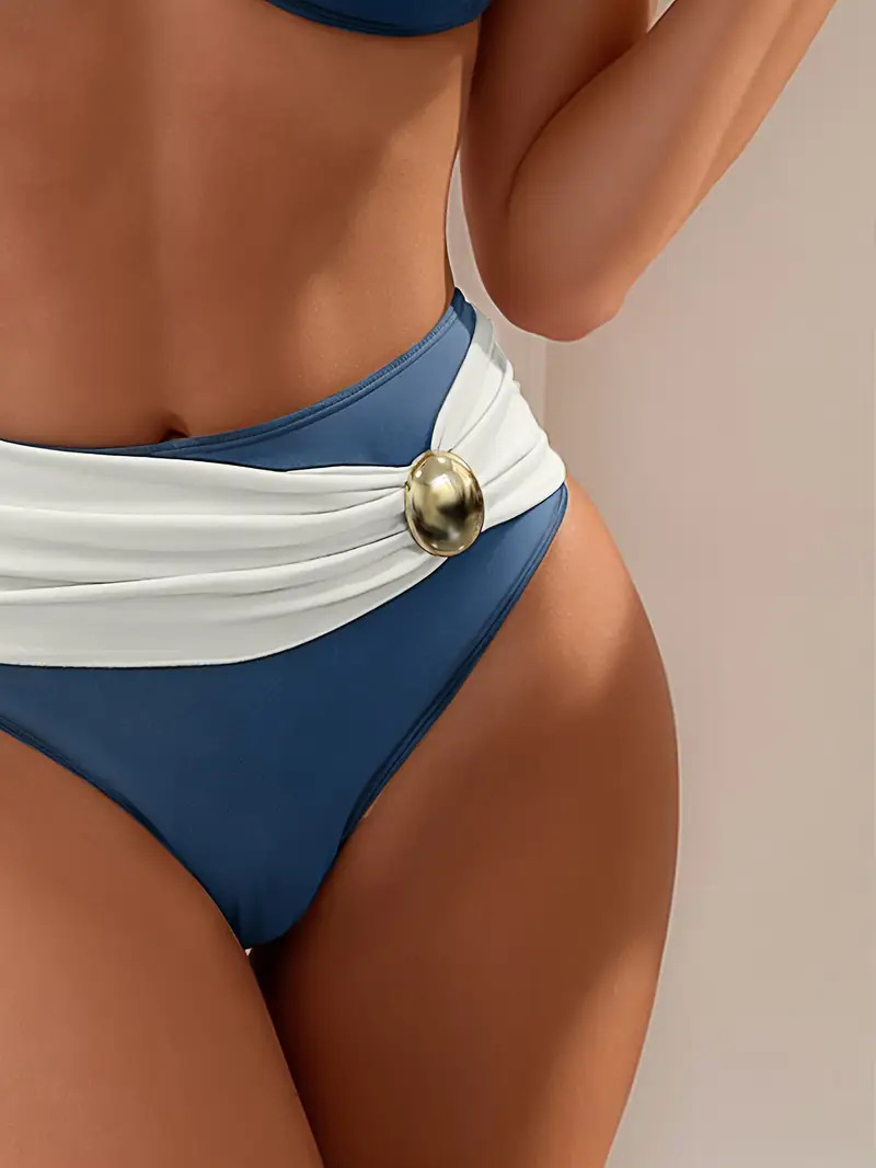 국경 간 2025 대외 무역 새로운 유럽과 미국의 대비 색상 스플릿 비키니 버튼 장식 섹시한 패션 여성 수영복