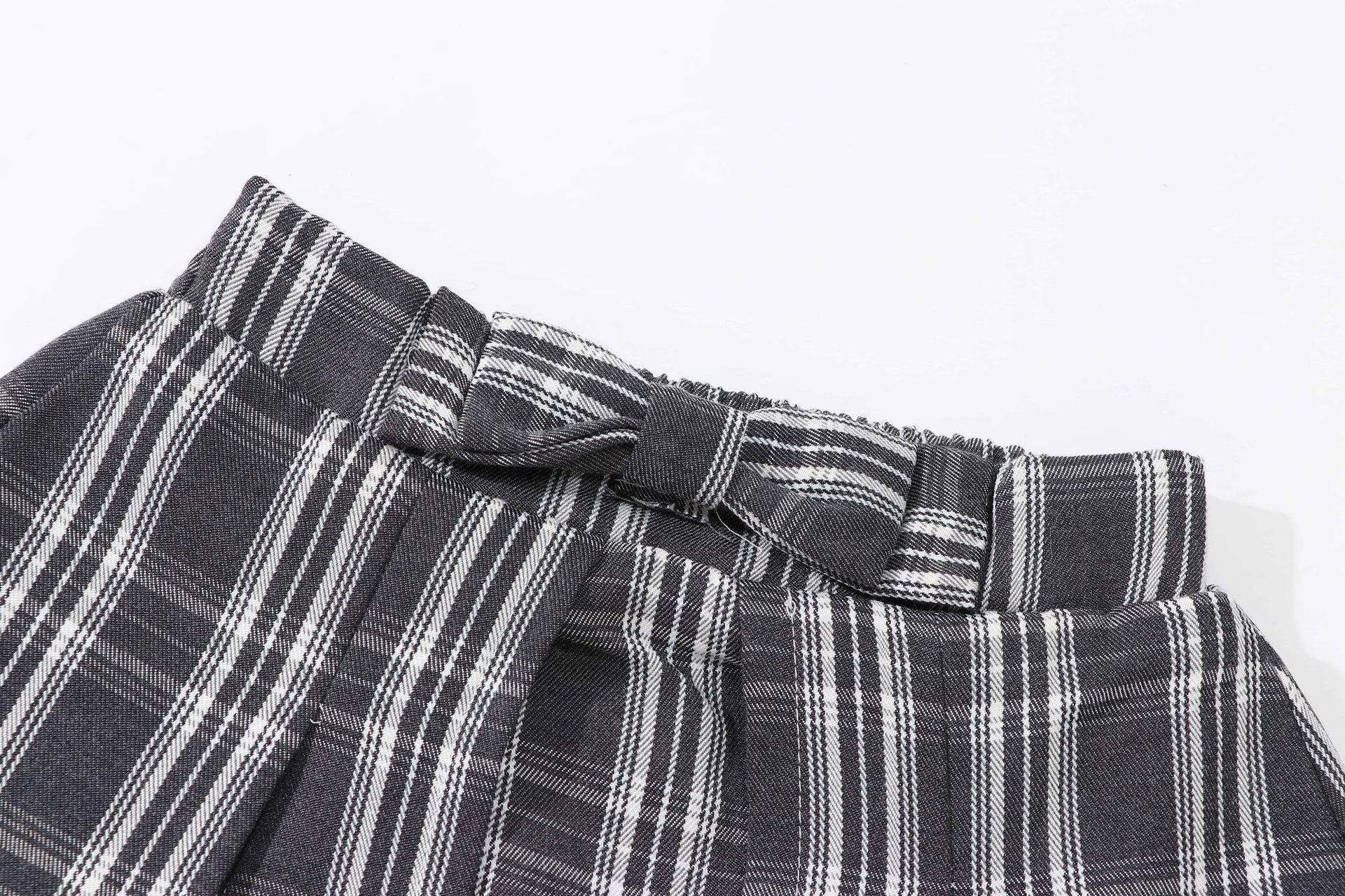 • 블랙 앤 그레이 체크 25027 리본 더블 레이어 스커트 힙 스커트