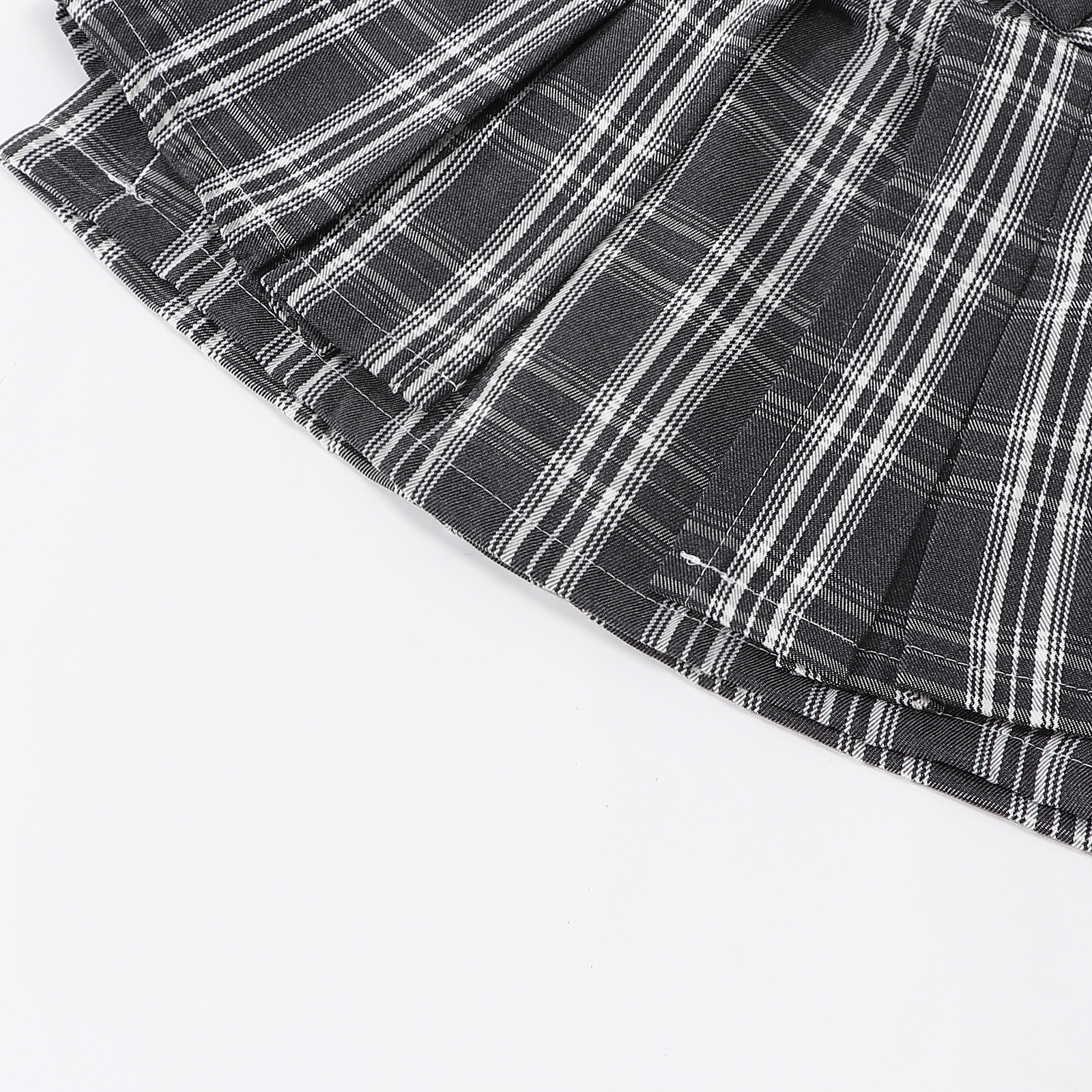 아메리칸 스타일 블랙 플레이드 주름 치마 소녀의 봄과 여름 높은 허리 활 격자 스커트 안티 러닝 A 라인 스커트