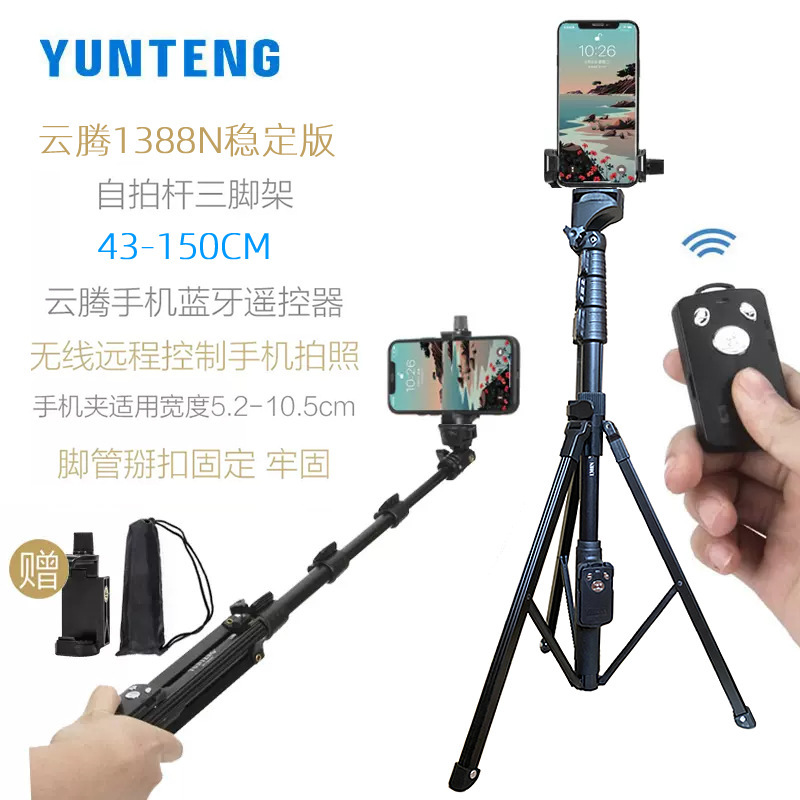 Yunteng 1388L 삼각대 셀카봉 1.75m 휴대폰 블루투스 원격 제어 사진 휴대용 미러리스 카메라 스탠드스토어 가기