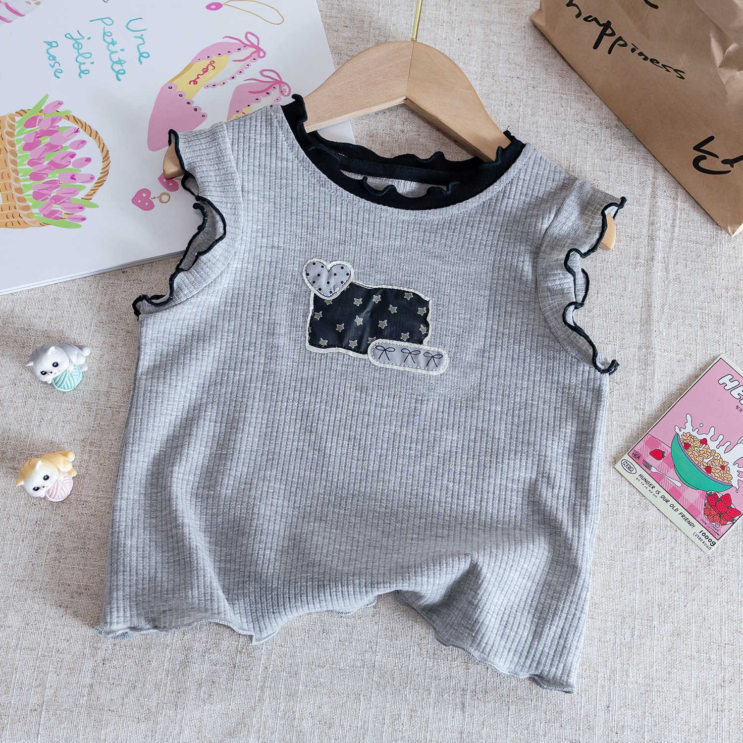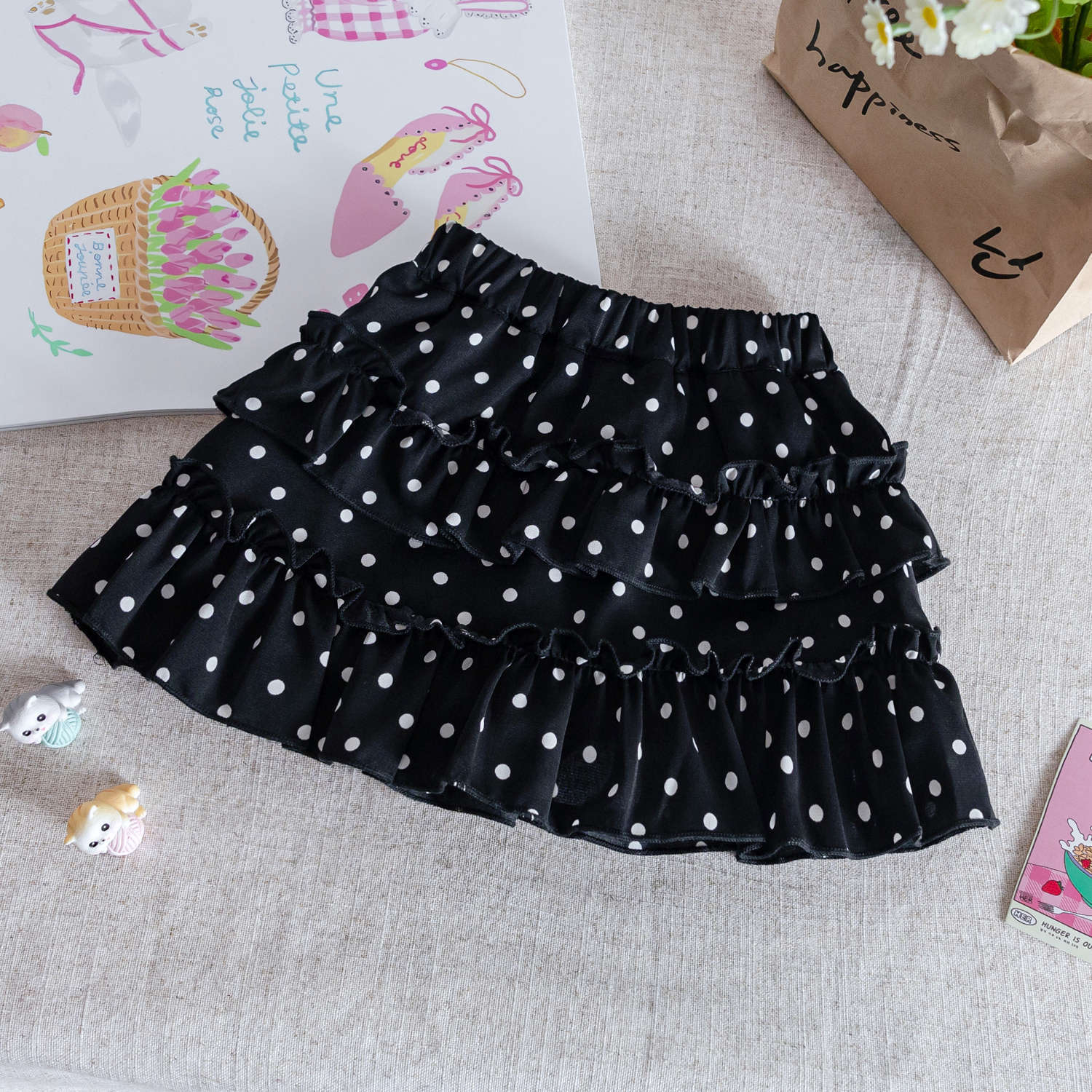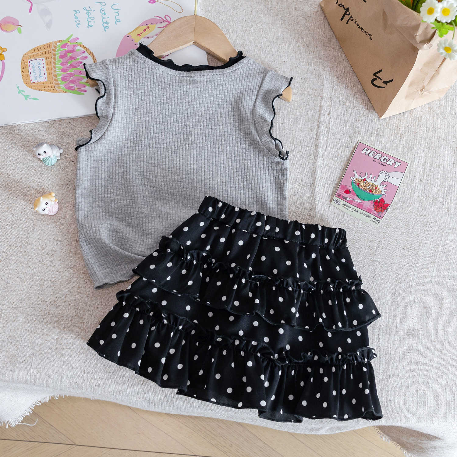 여자 여름 조끼 세트 2025 새로운 도착 한국 스타일 아기 소녀 폴로 도트 스커트와 귀 테두리 탑 착용