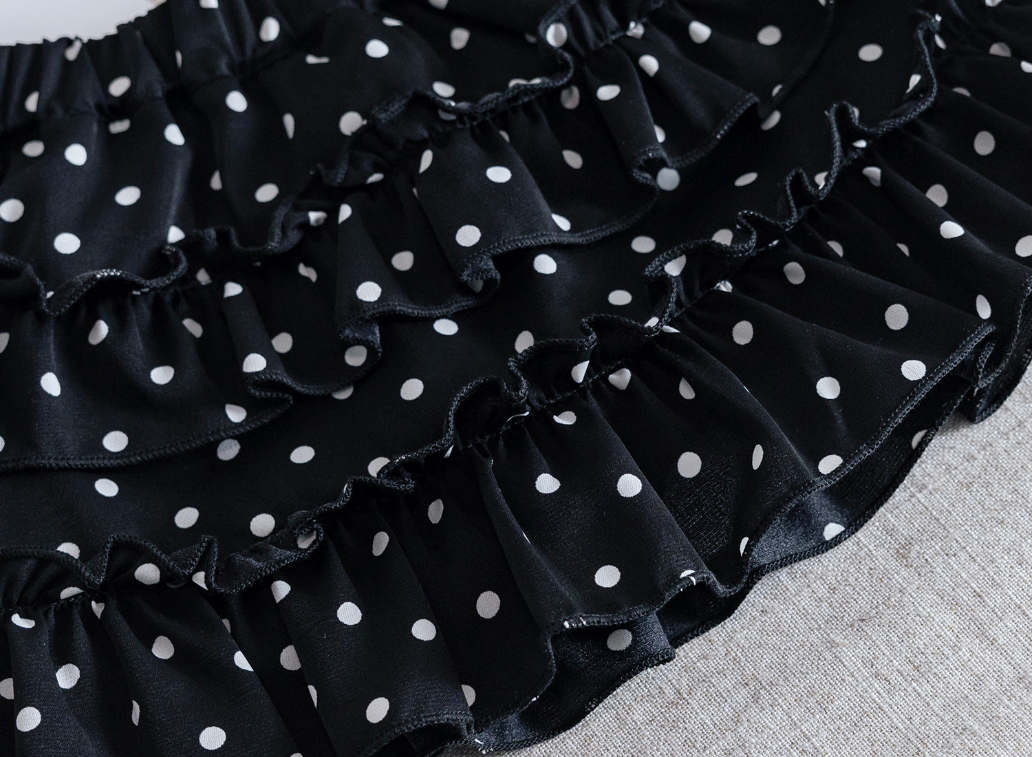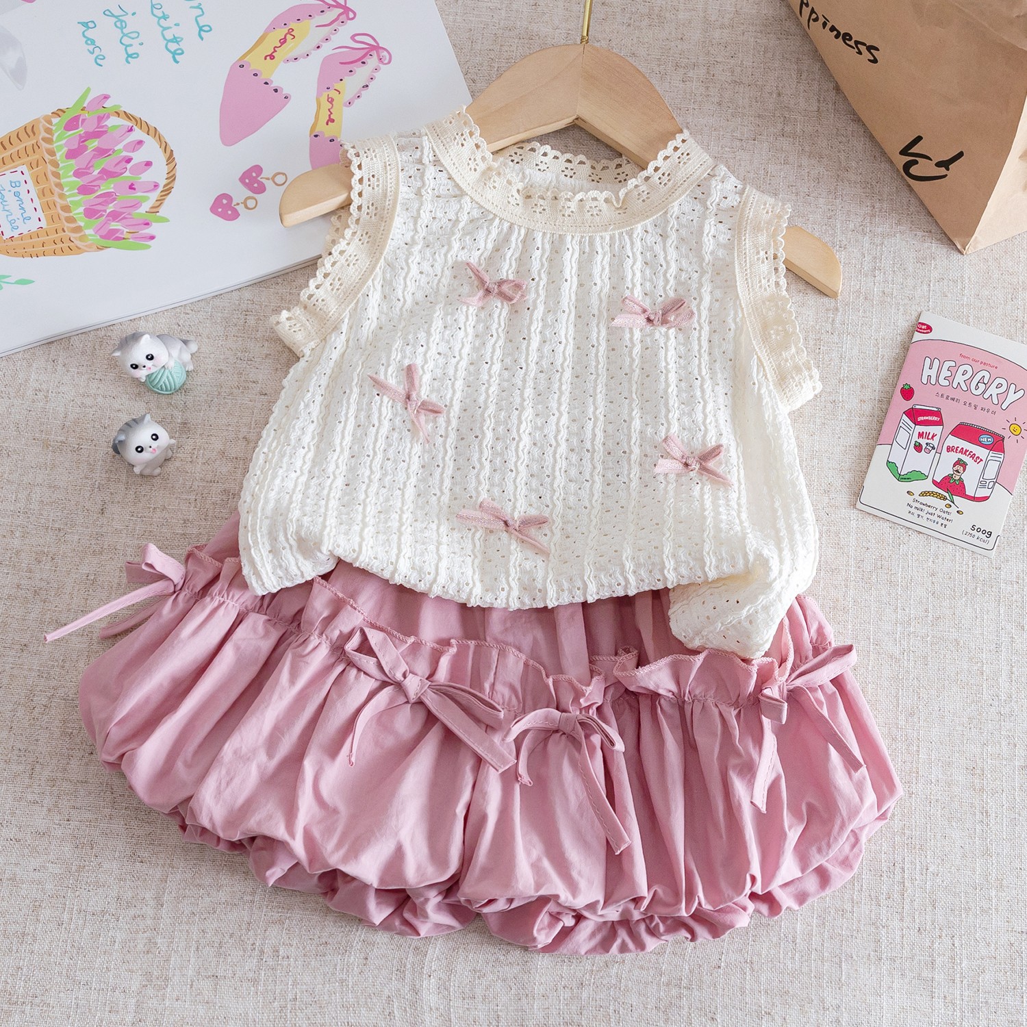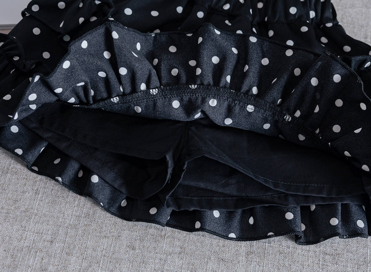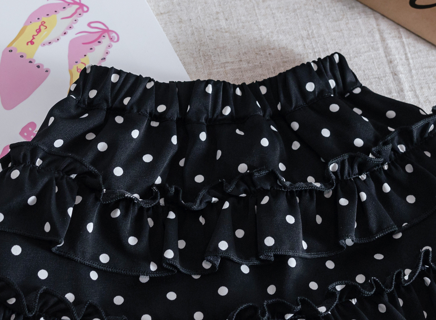 여자 여름 조끼 세트 2025 새로운 도착 한국 스타일 아기 소녀 폴로 도트 스커트와 귀 테두리 탑 착용