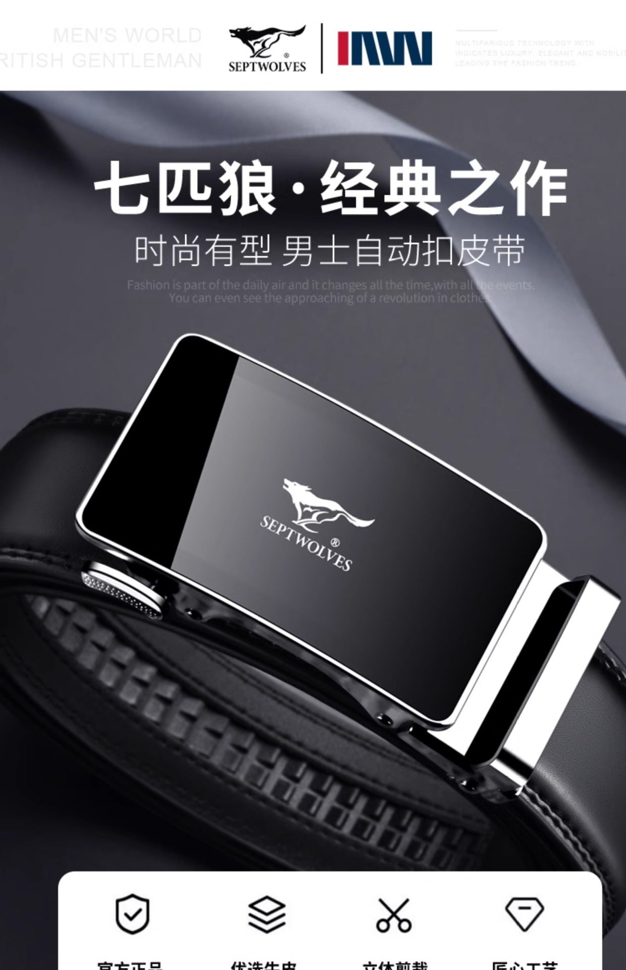 Septwolves 남성용 벨트 정품 가죽 자동 버클 벨트 2025 New Dad 정품 고급 브랜드 유명 바지 벨트스토어 가기