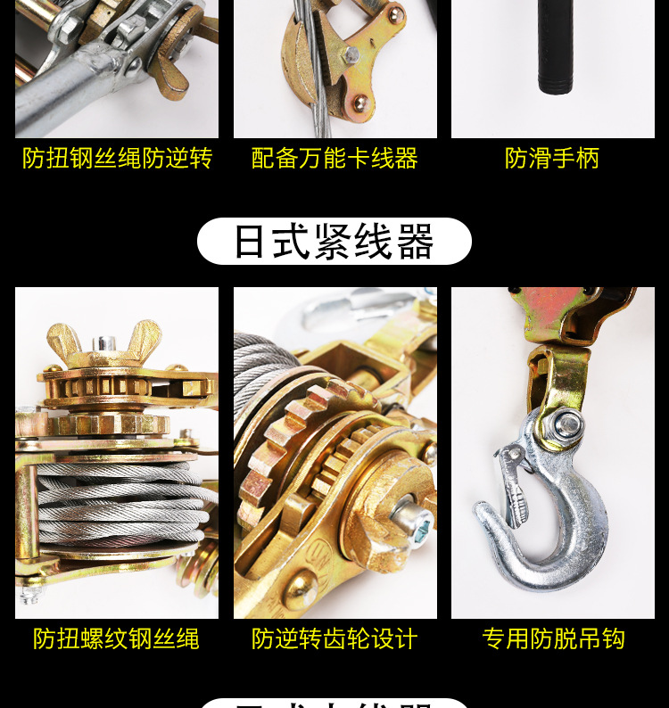다기능 일본식 와이어 텐셔너 2T 온실 와이어 로프 더블 후크 4톤 전력 케이블 텐셔너 범용 와이어 클램프