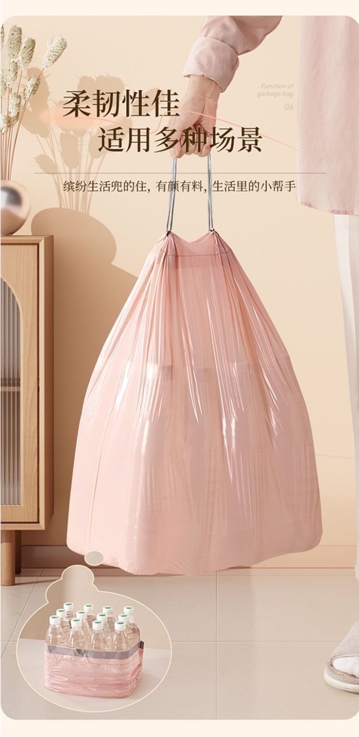 아이스베리 핑크색 조임끈 쓰레기봉투, 두꺼워서 깨지기 쉽지 않은 쓰레기봉투, 가정용 주방 휴대용 쓰레기봉투스토어 가기