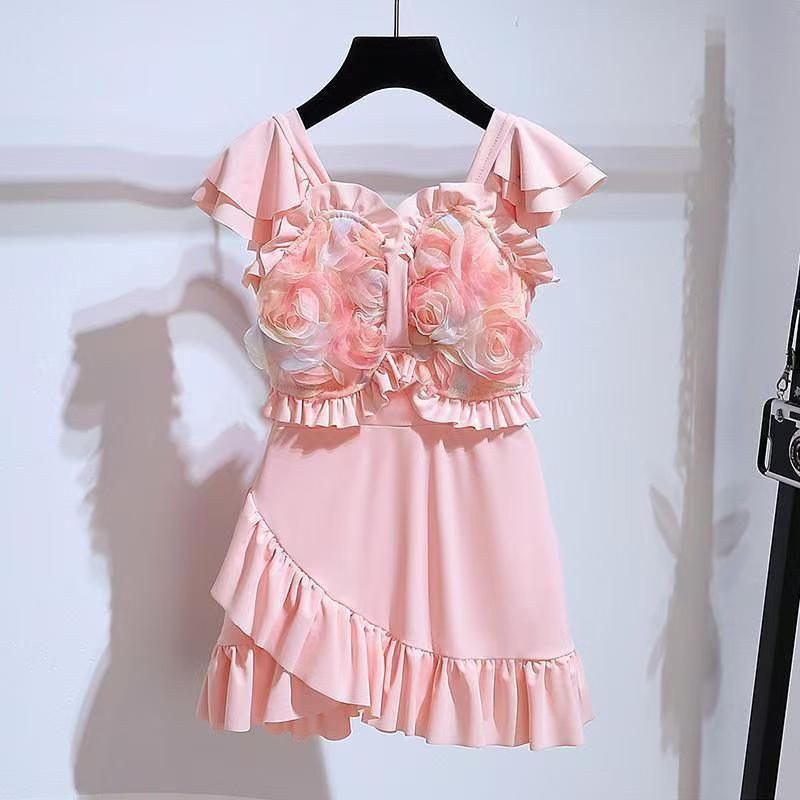 여자 수영복 여름 2025 새로운 스타일 서양식 연꽃 잎 스커트 분할 수영복 어린이 도파민 공주 수영복스토어 가기
