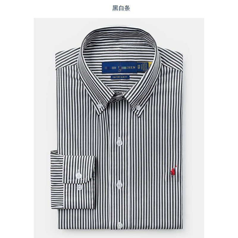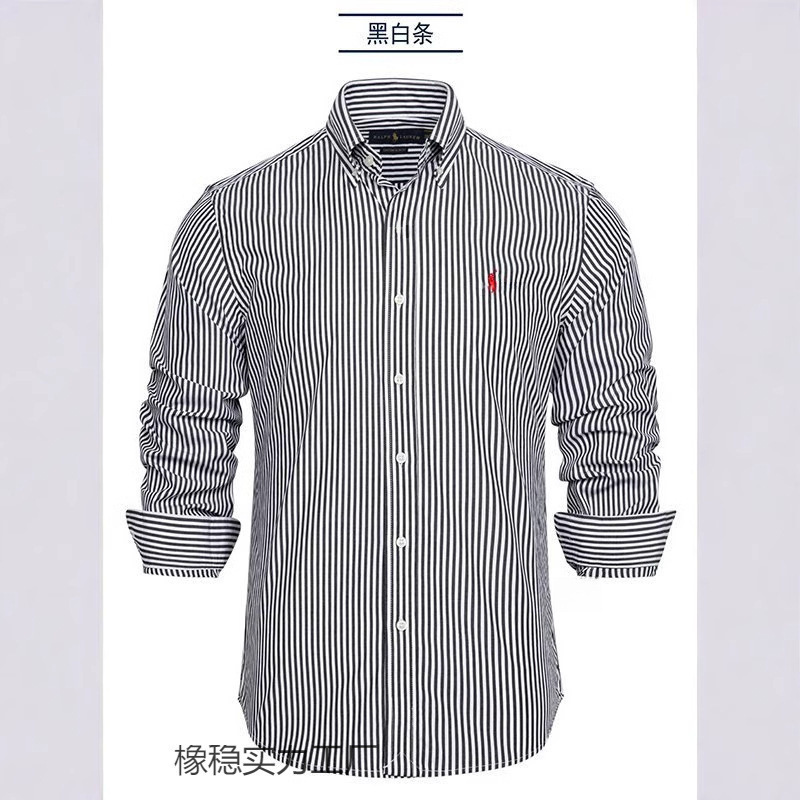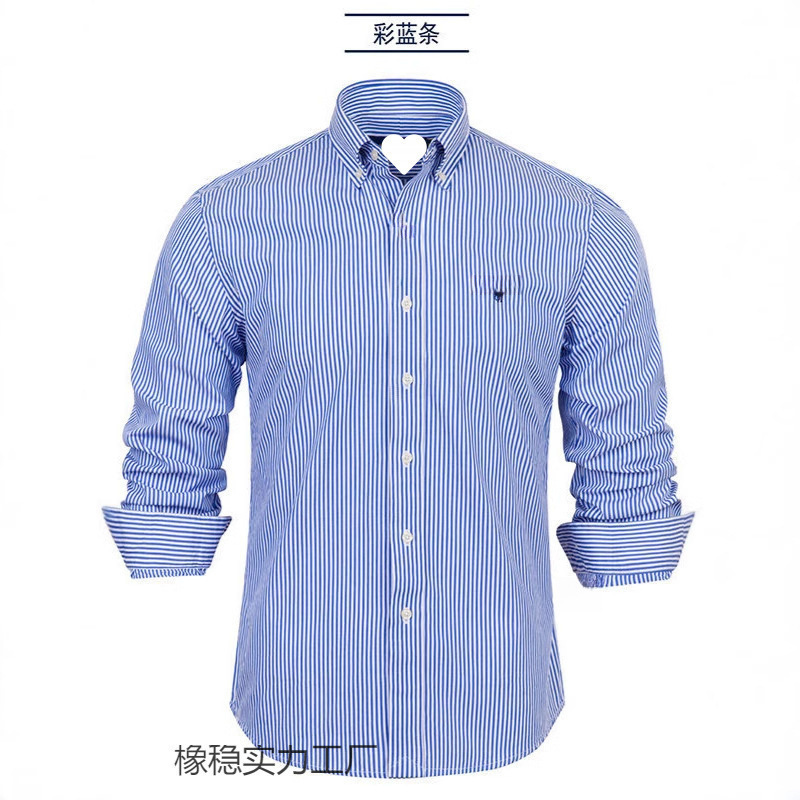 2025년 신상 스트라이프 긴팔 셔츠 소형 로고 수출용 남성 자수 카라 티셔츠 남성복 폴로 셔츠스토어 가기