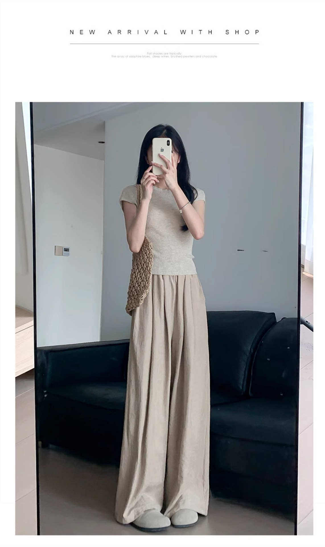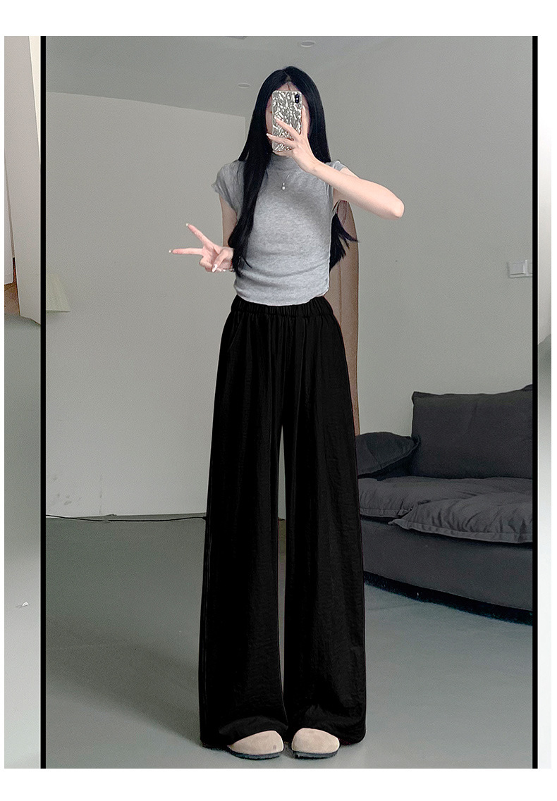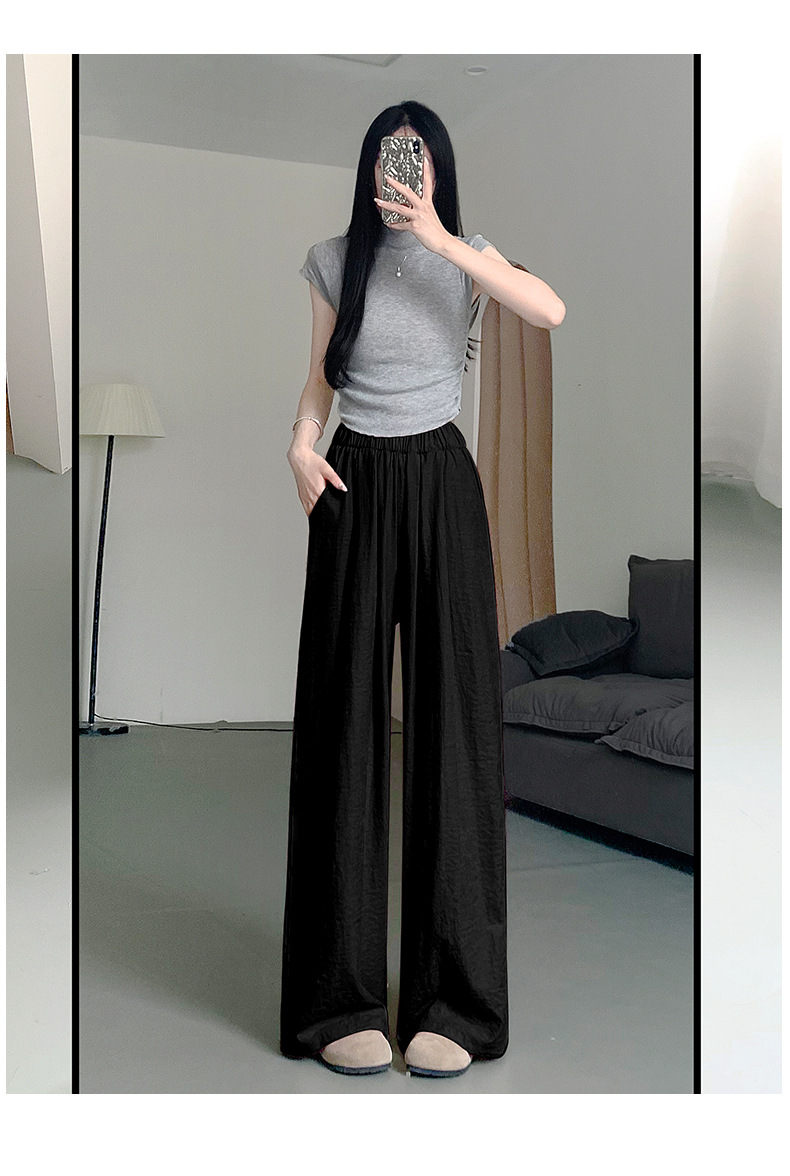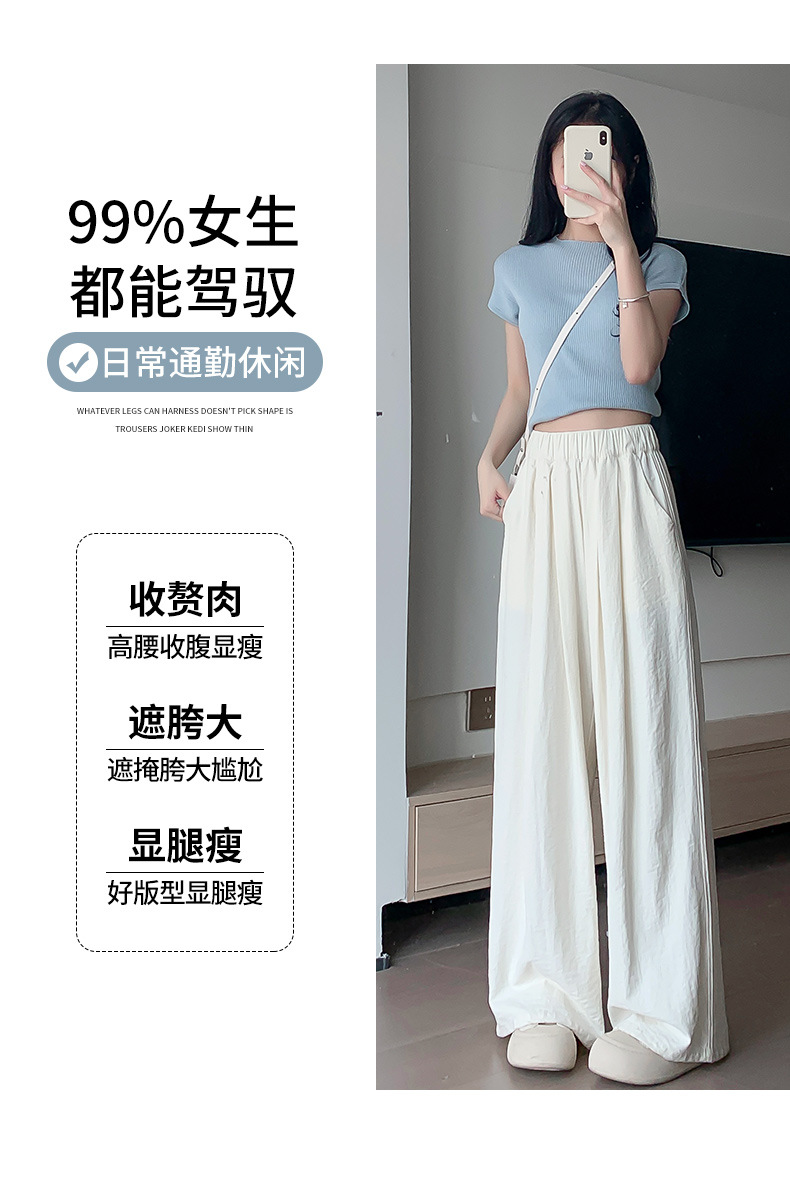 여성을위한 원피스 배송 얼음 실크 야마모토 바지 넓은 다리 바지 여름 새로운 스타일 하이 웨이스트 슬리밍 드레이프 게으른 유방 바지