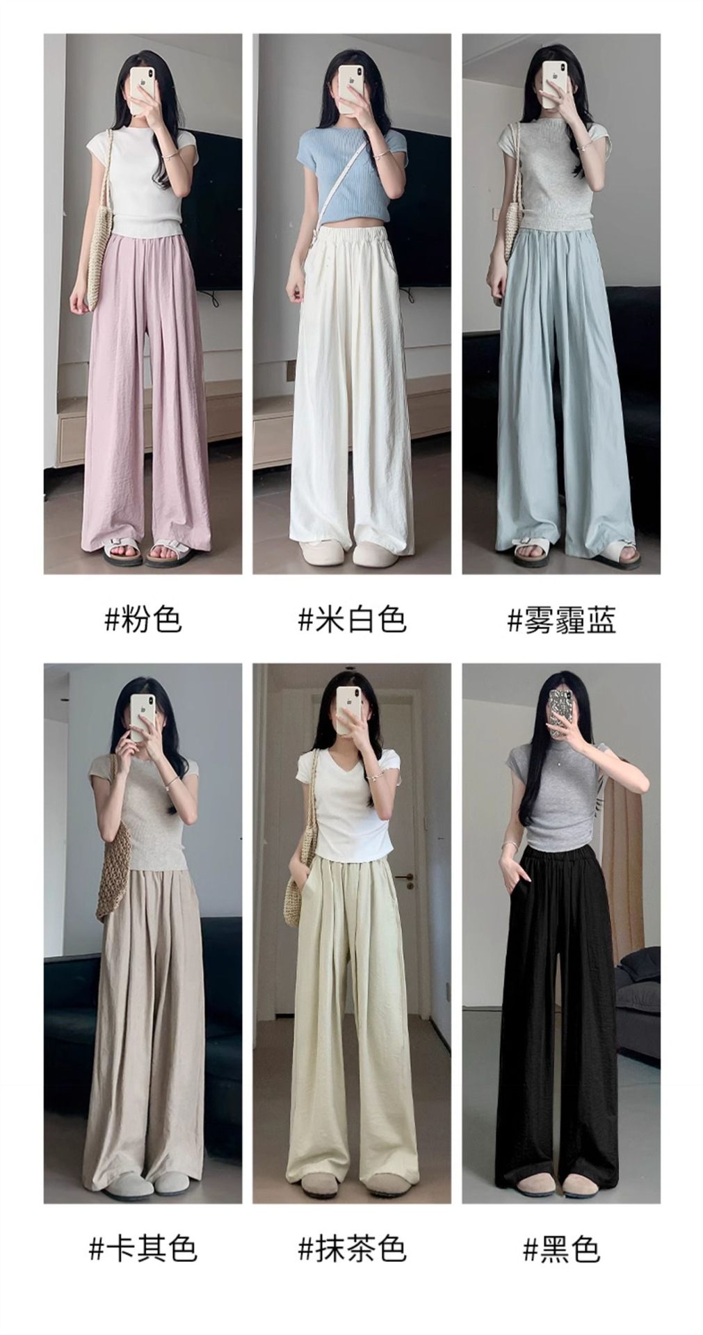 여성을위한 원피스 배송 얼음 실크 야마모토 바지 넓은 다리 바지 여름 새로운 스타일 하이 웨이스트 슬리밍 드레이프 게으른 유방 바지스토어 가기