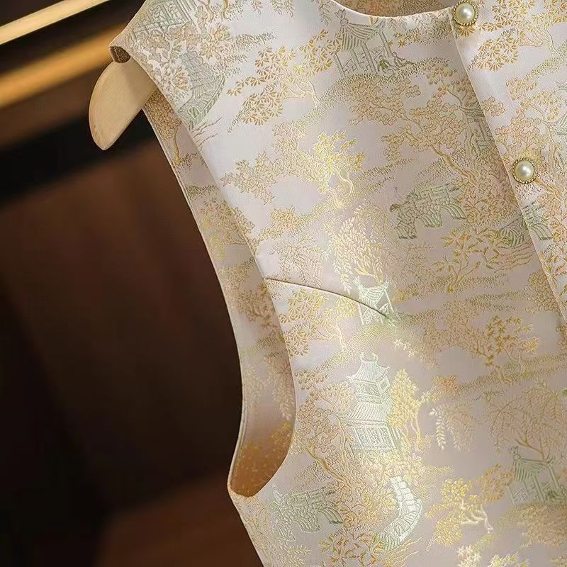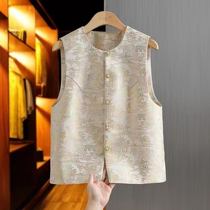 2025 봄과 가을 새로운 하이 엔드 심플 조끼 라운드 넥 올 매치 내셔널 스타일 우아한 웨이스트 코트 여성용 탑