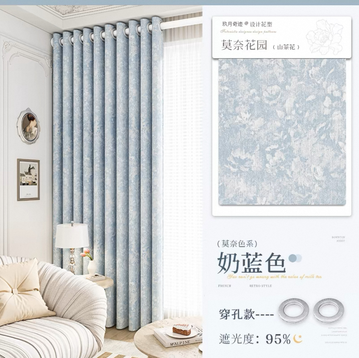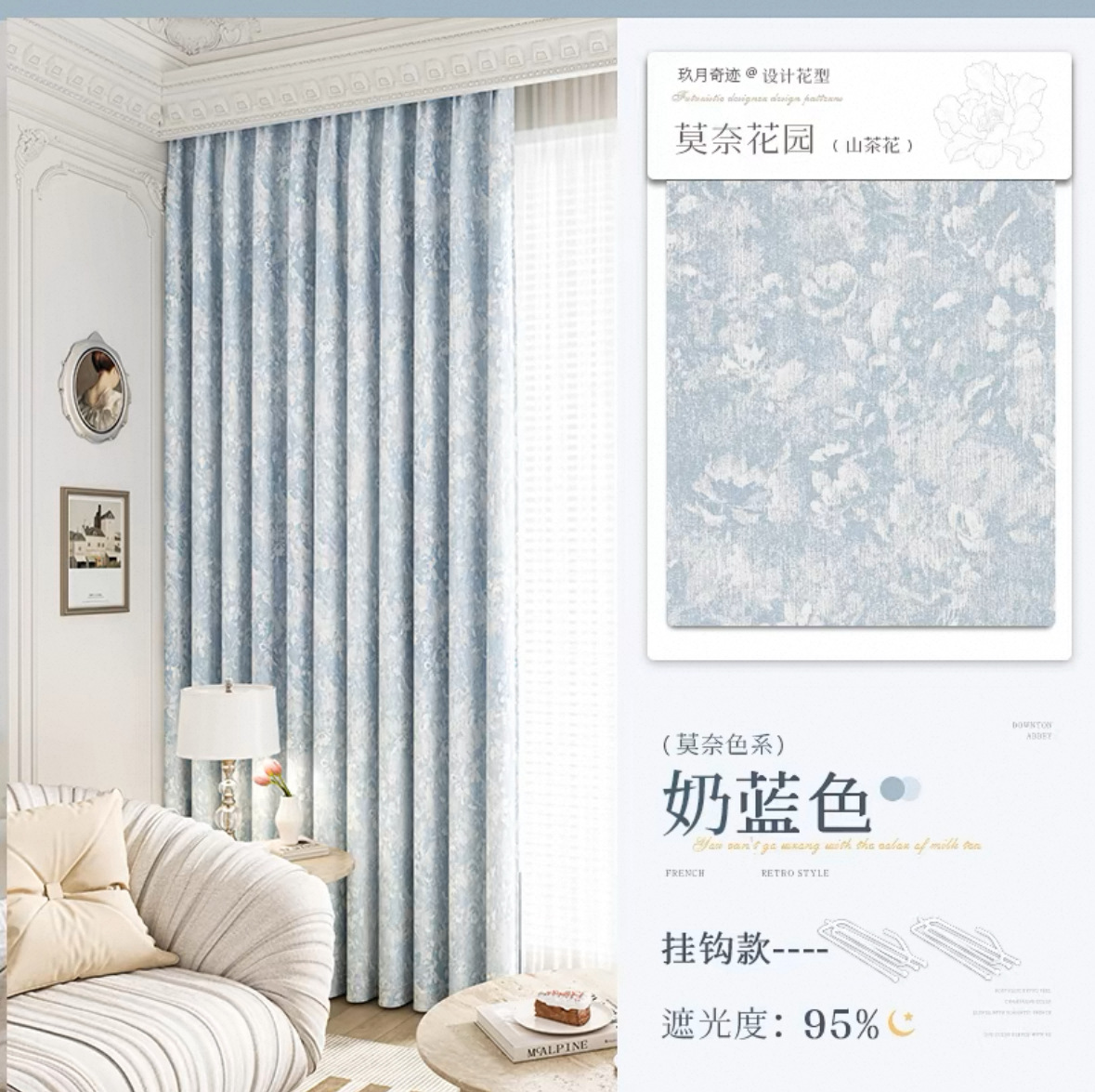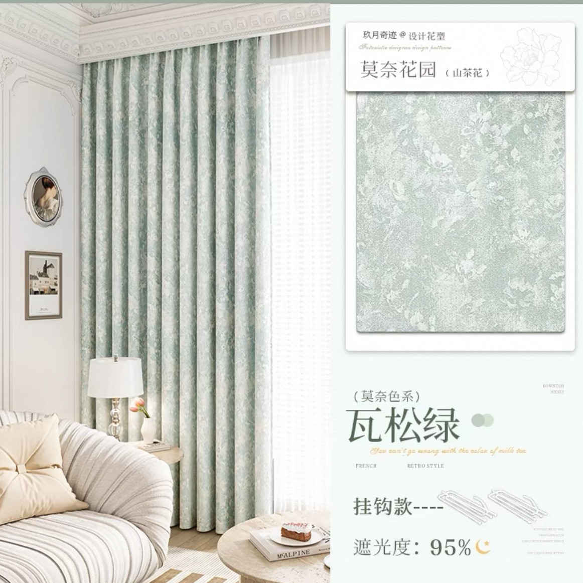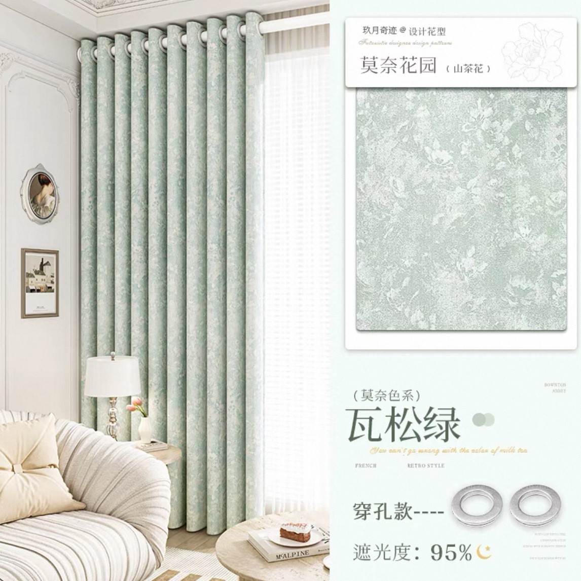 2025 새로운 프랑스 스타일 모네 정원 커튼 전체 정전 체니 침실 빛 럭셔리 현대 간단한 거실 베이 창