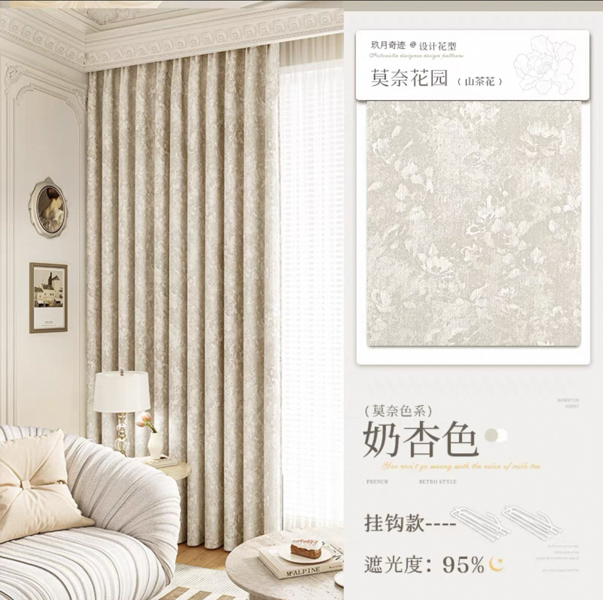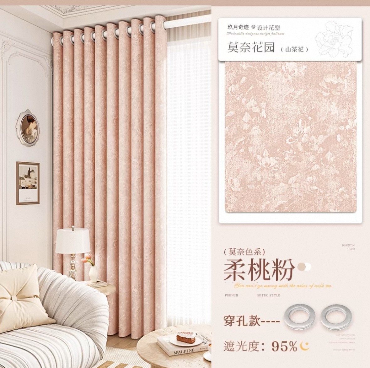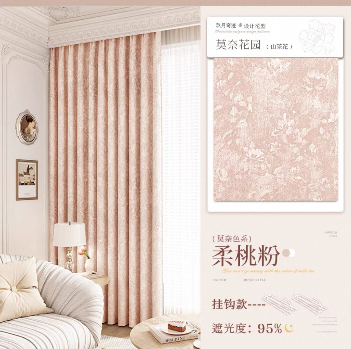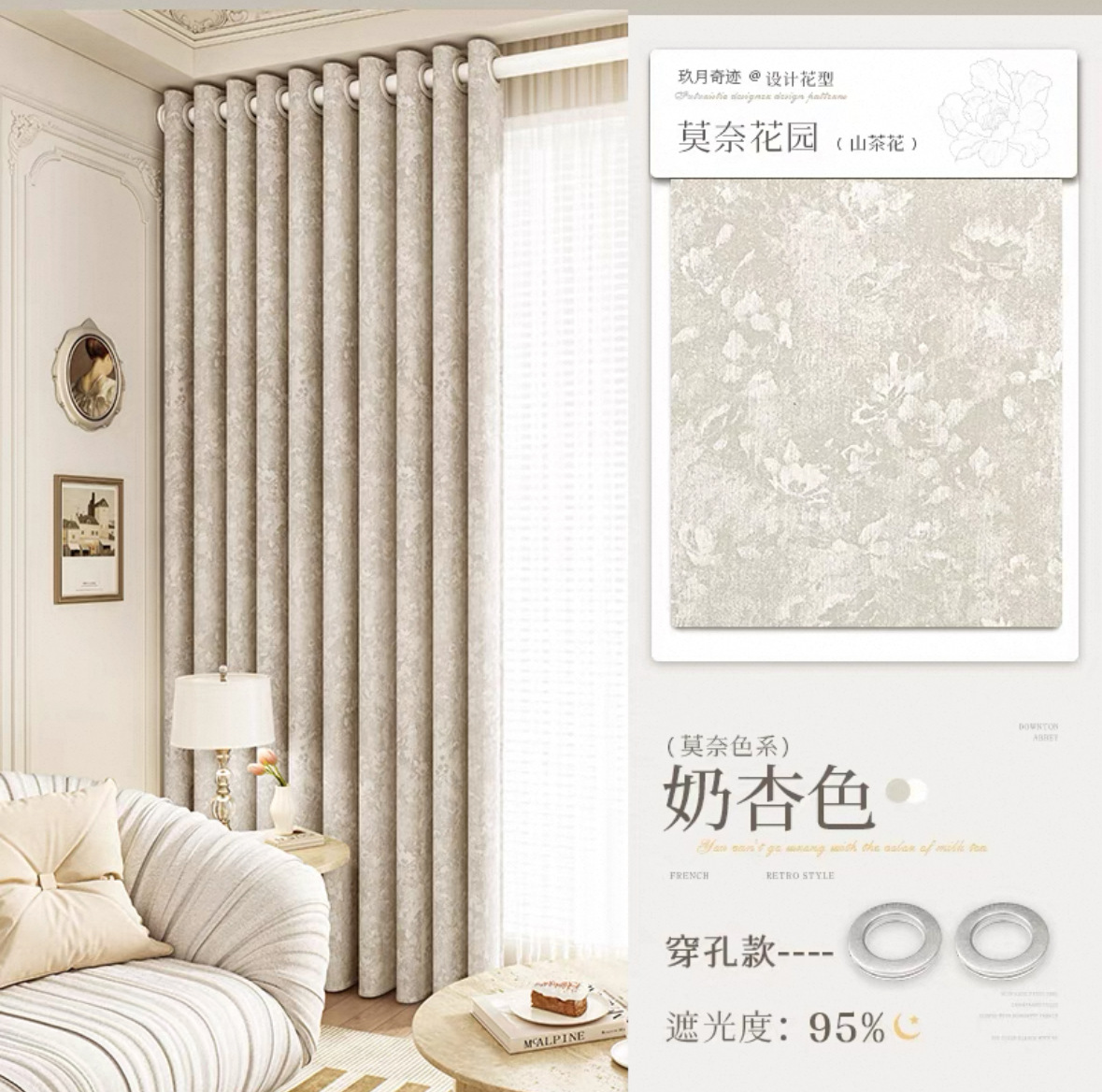 2025 새로운 프랑스 스타일 모네 정원 커튼 전체 정전 체니 침실 빛 럭셔리 현대 간단한 거실 베이 창