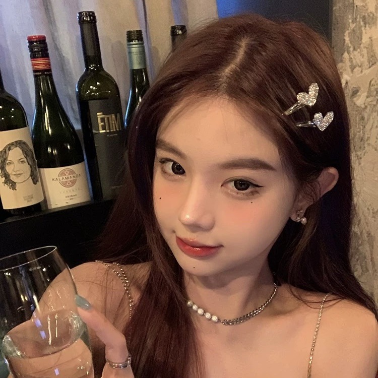 스파클링 라인스톤 덕빌 클립 헤드웨어 여성용 최소 헤어핀 뱅 클립 사이버 축하 사이드 클립 깨진 머리 머리핀 헤어 액세서리