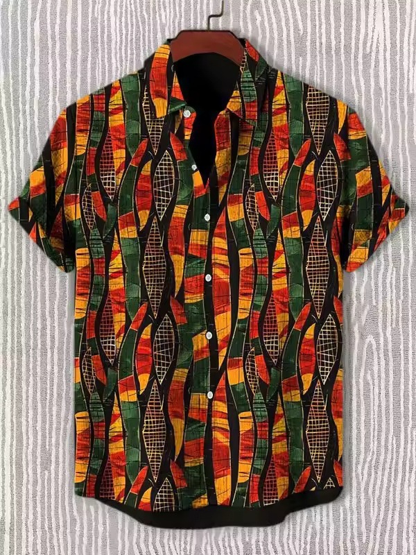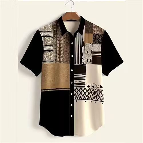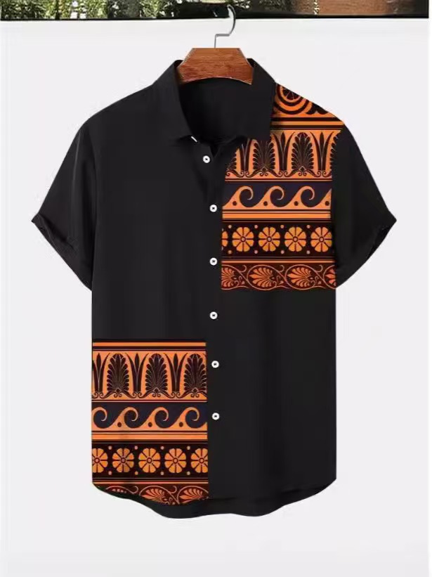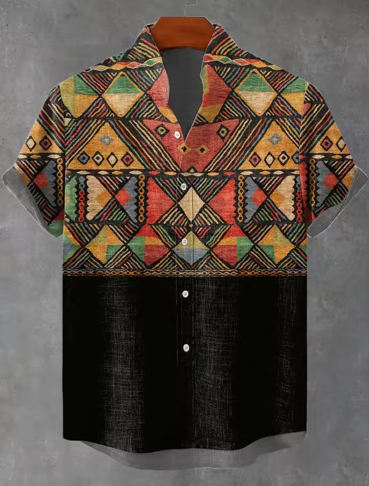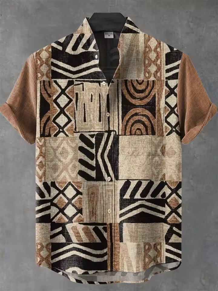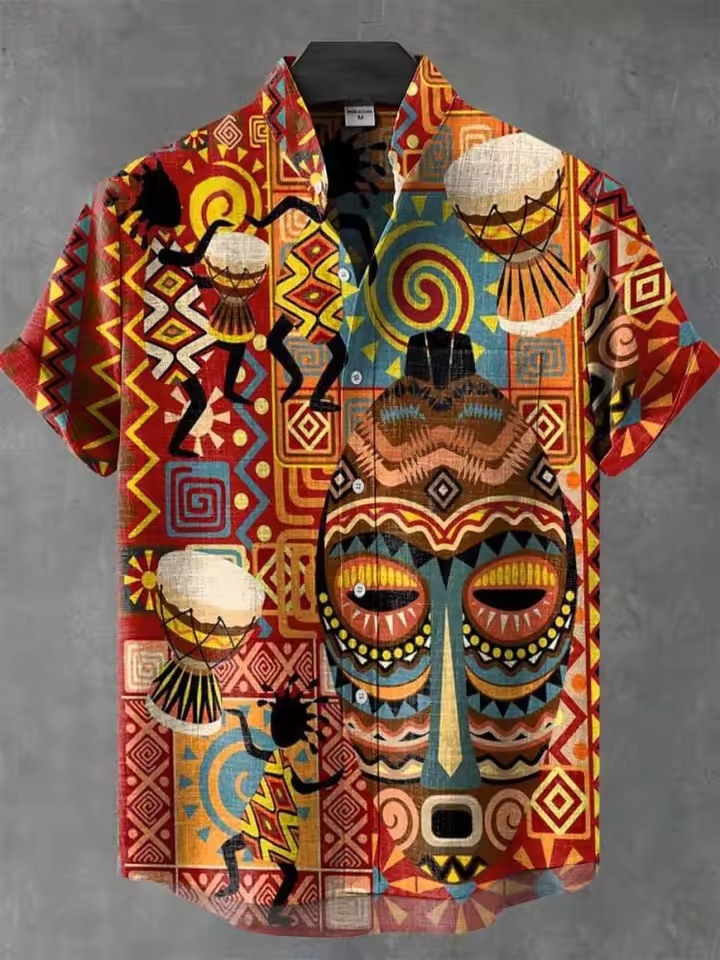 2025 남자 복고풍 민족 부족 짧은 소매 셔츠 최고 패션 캐주얼 휴가 거리 유행 남성 셔츠스토어 가기
