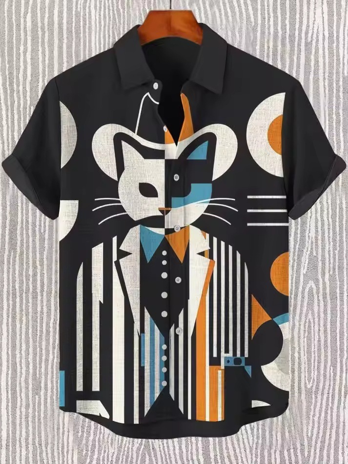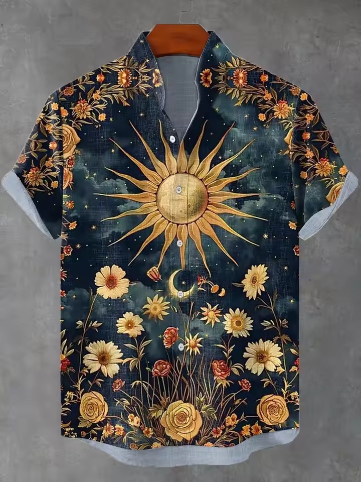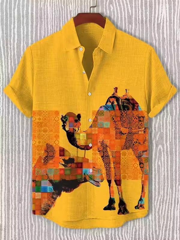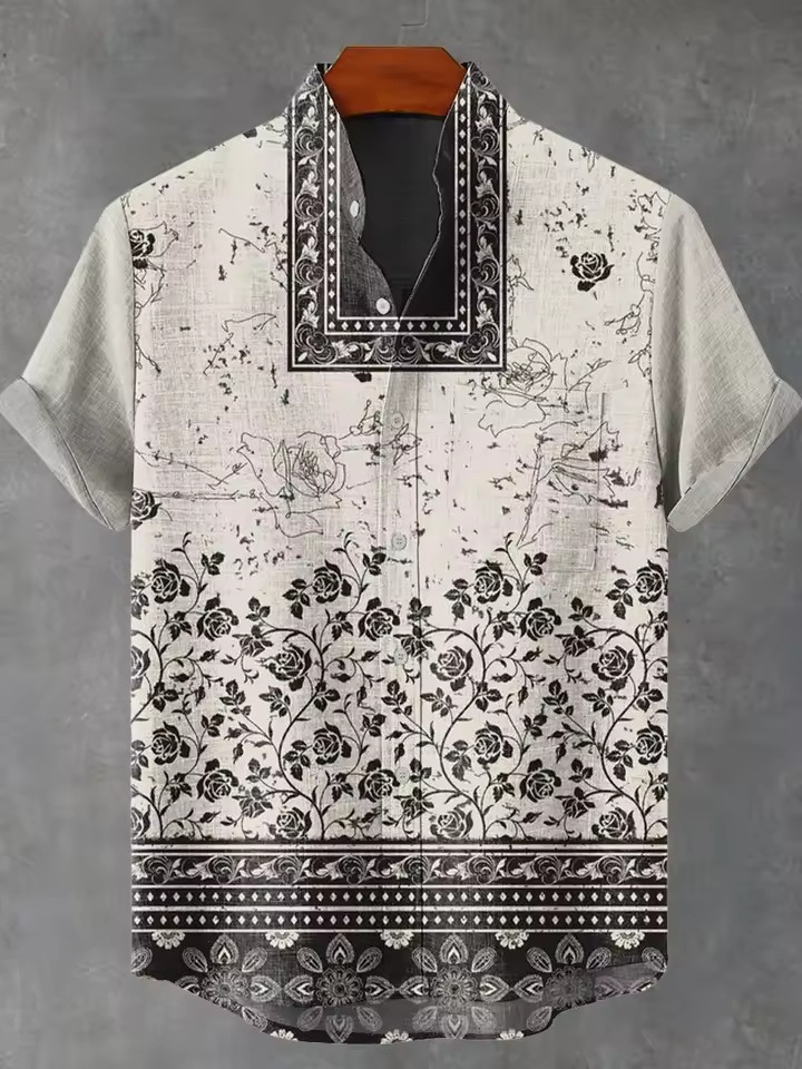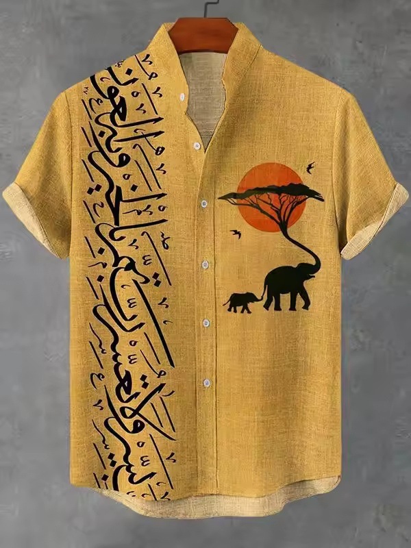 2025 남자 복고풍 민족 부족 짧은 소매 셔츠 최고 패션 캐주얼 휴가 거리 유행 남성 셔츠스토어 가기