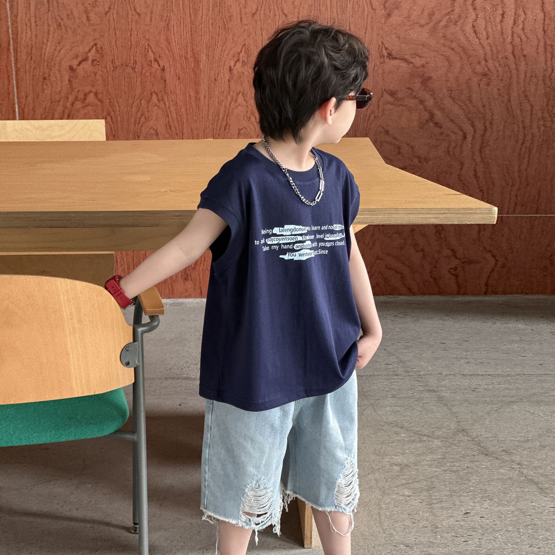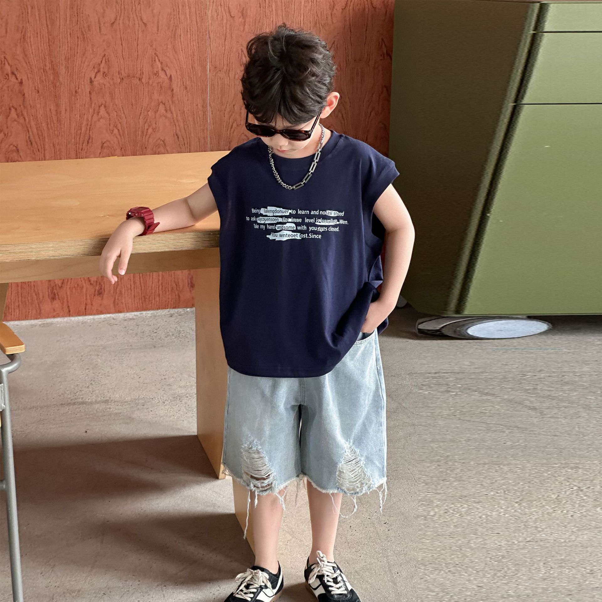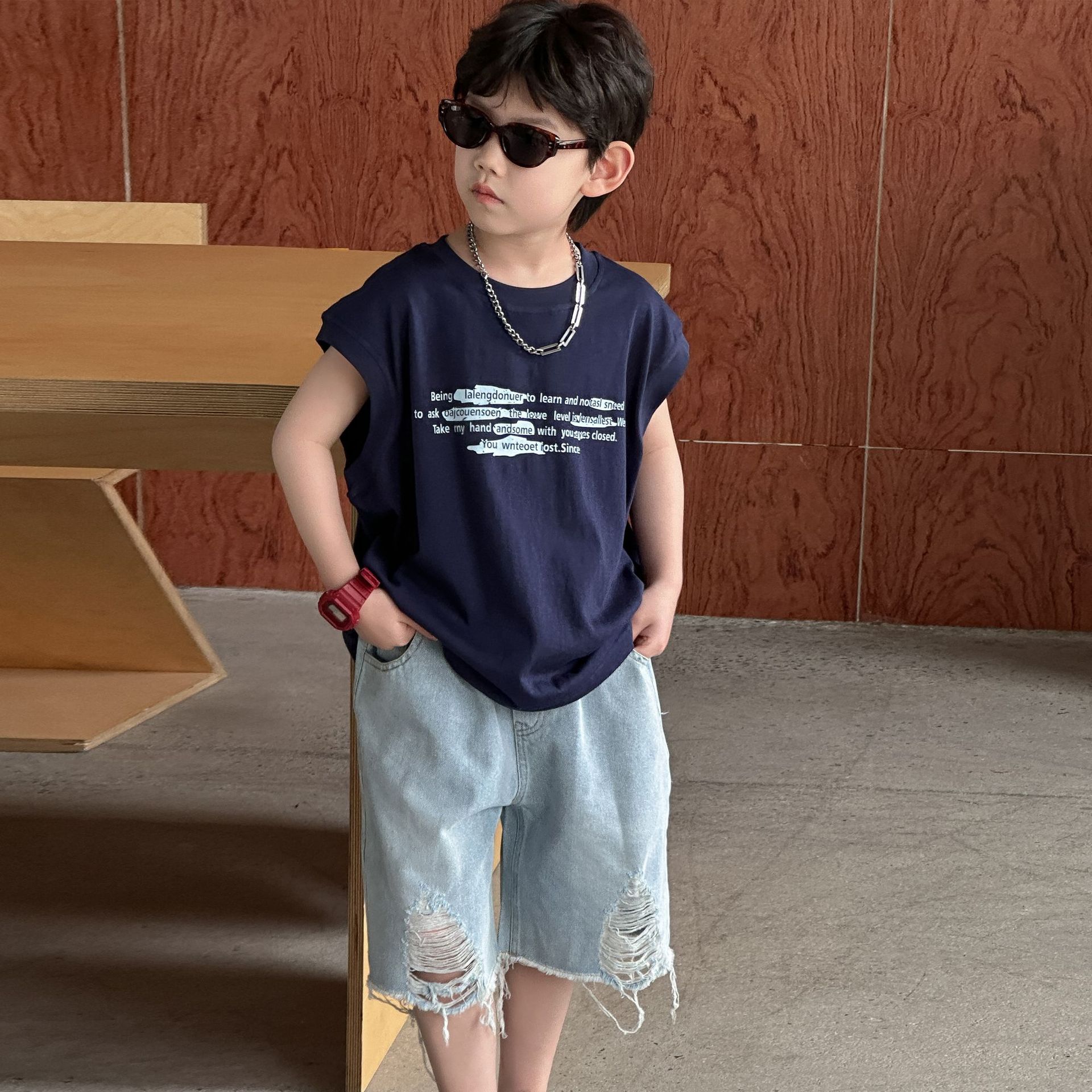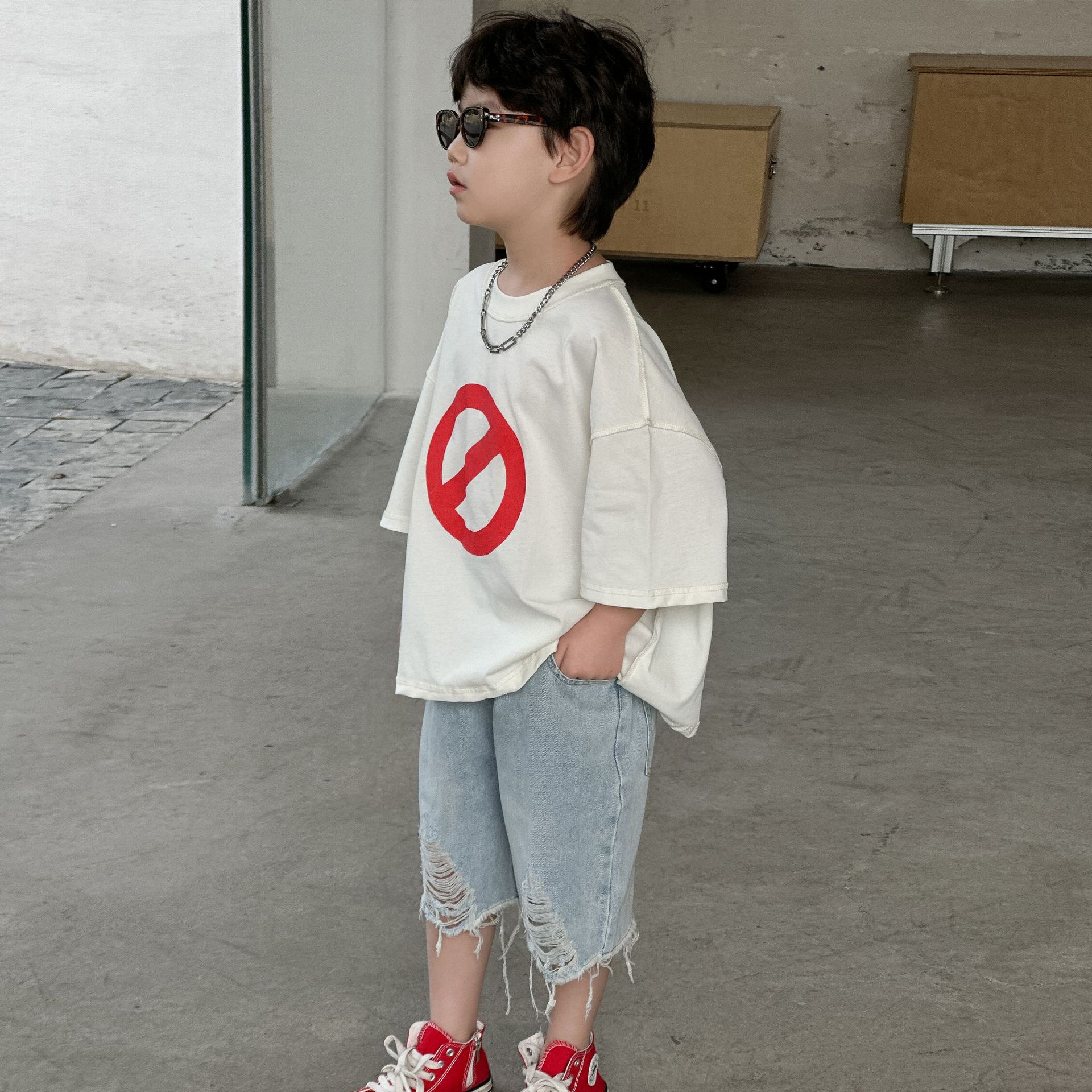 남학생 여름 반바지 2025 여름 찢어진 청바지 어린이 중간 바지 느슨한 미국식 소년의 세련된 멋진 바지스토어 가기