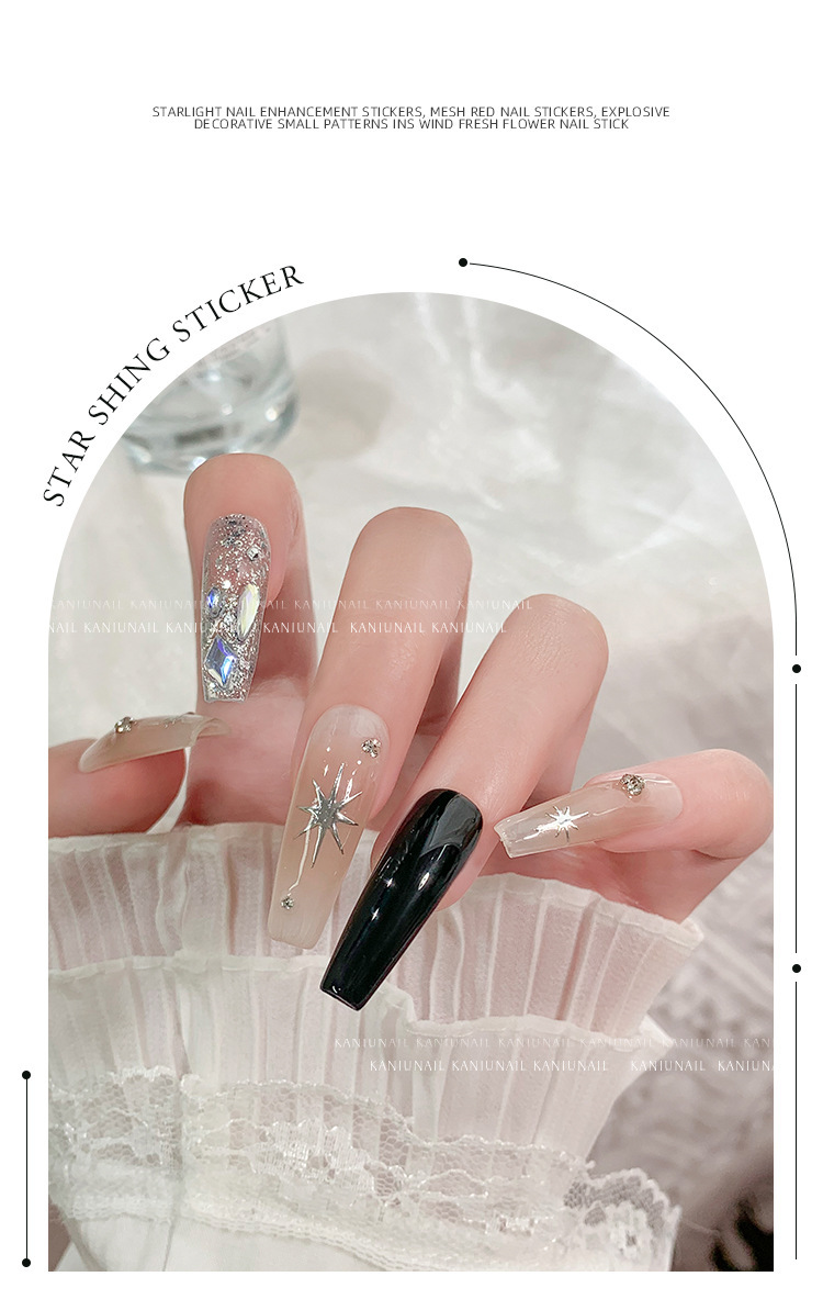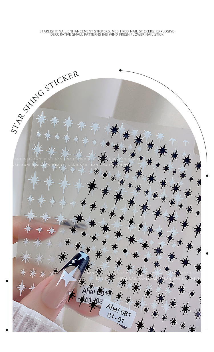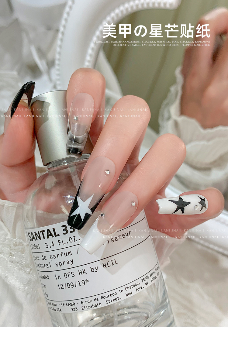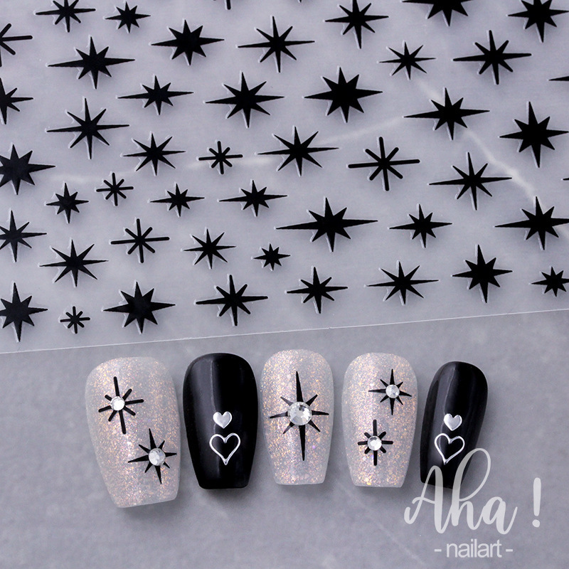 스타 매니큐어 스티커 인터넷 인기 골드 및 실버 스타 블랙 및 화이트 네일 스티커스토어 가기