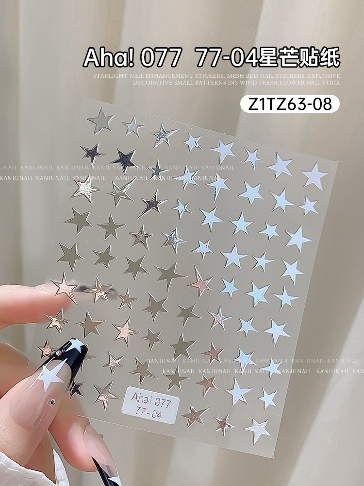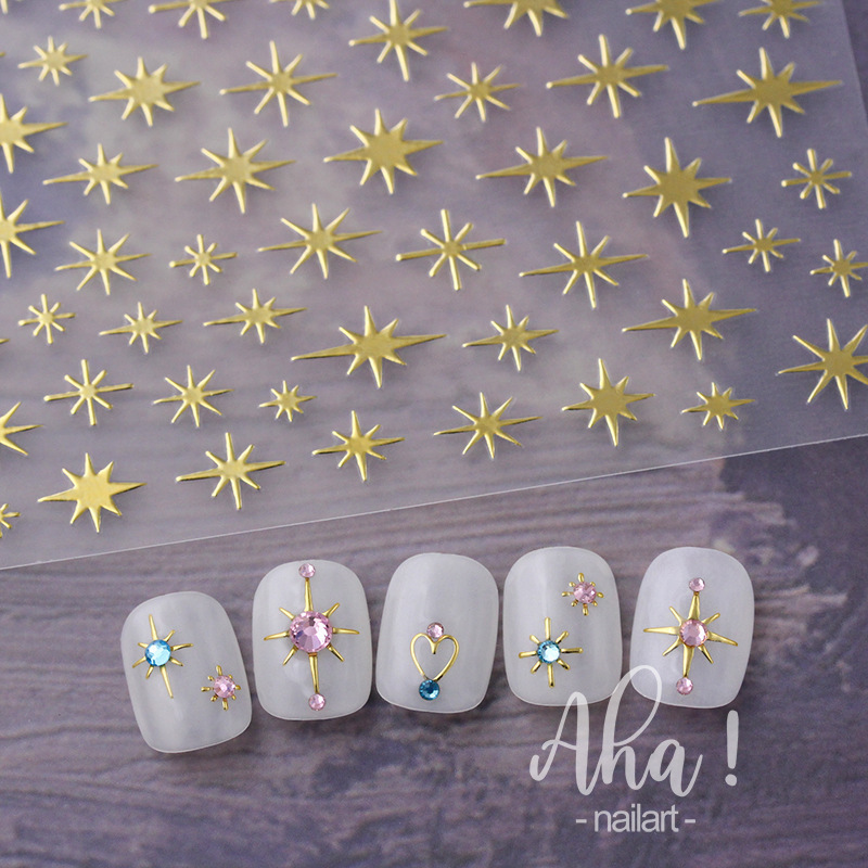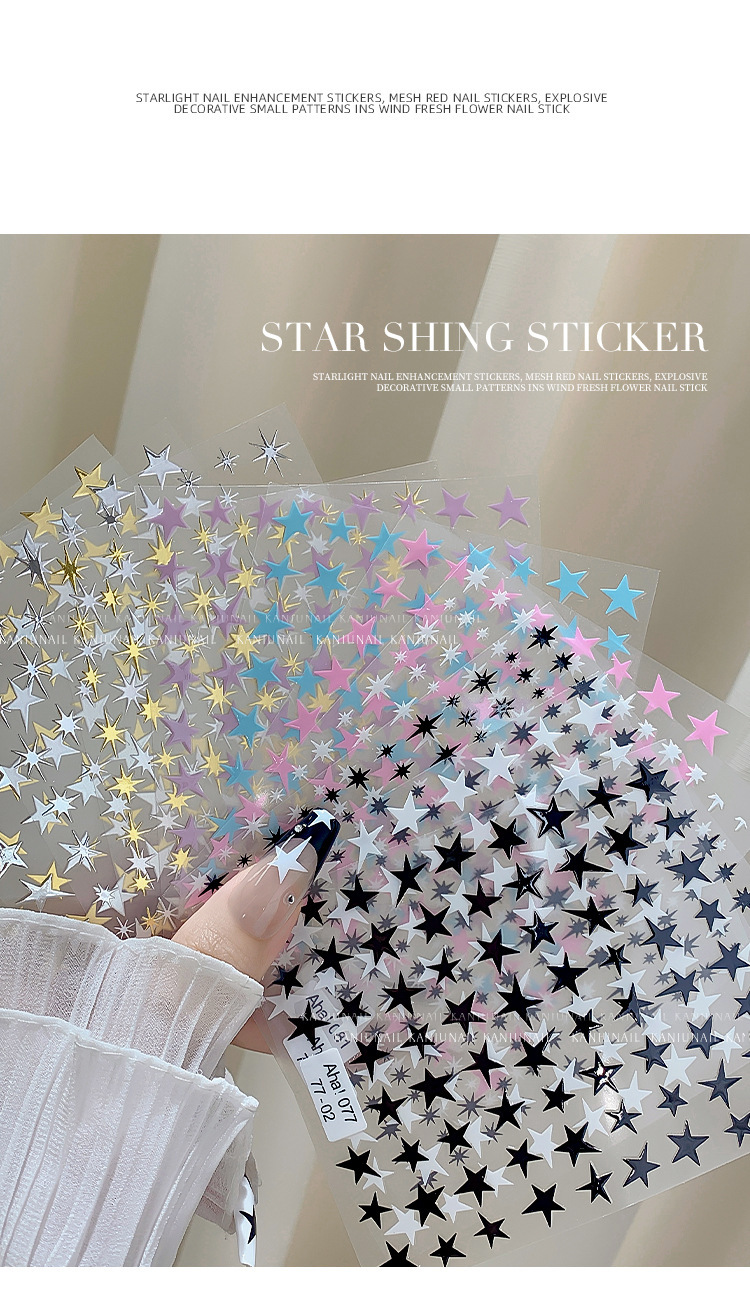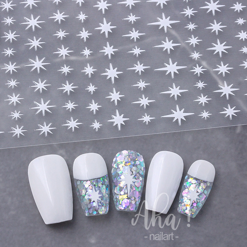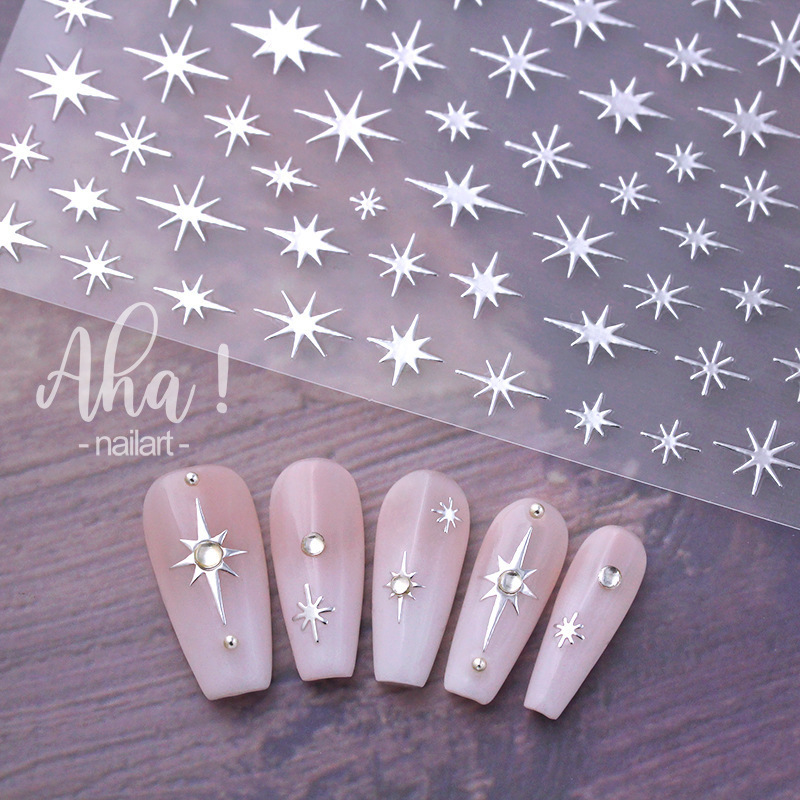 스타 매니큐어 스티커 인터넷 인기 골드 및 실버 스타 블랙 및 화이트 네일 스티커스토어 가기